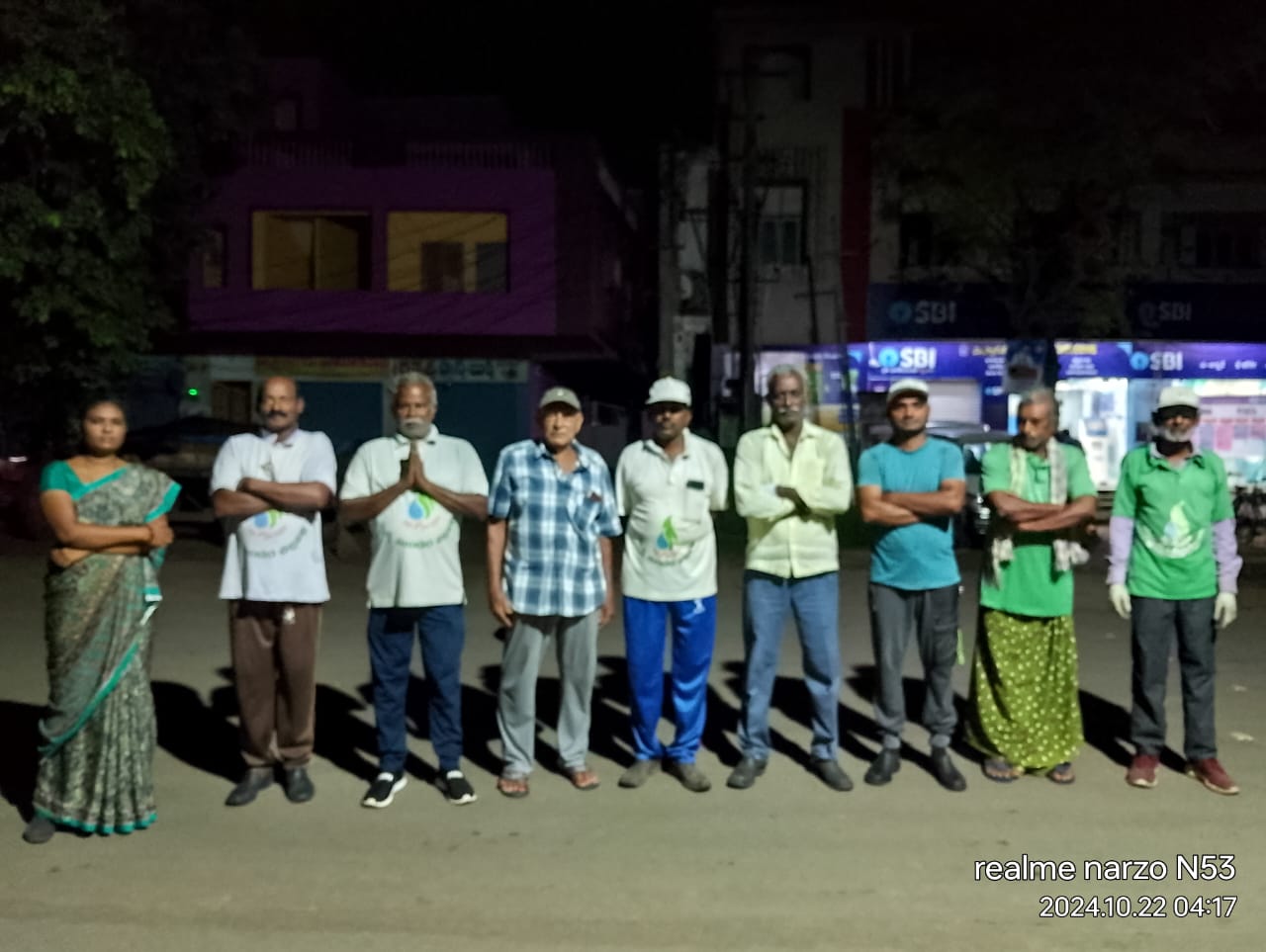 ఈ వేకువ 4-16 కే  కనీసం పదిమంది SBI దగ్గరకు చేరుకొని, వాళ్ళ బలం 25 గానూ, శానిటరీ ఇన్స్పెక్టర్  సూర్య ప్రసాదు తదితరులతో తుదకు 30 గానూ తేలింది.