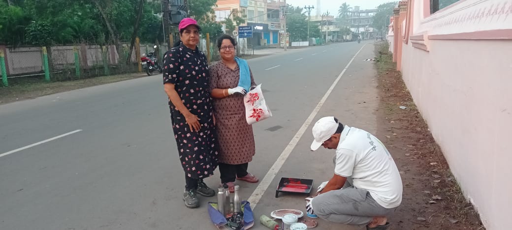 స్వచ్ఛంద శ్రమ శీలురు ఈ వేకువ కలుసుకొన్నది బందరు వీధిలోని సంతబజారు వద్ద - శ్రమించినది అదే రోడ్డులో ½ కిలోమీటరు బారునా మరియు అమరావతి జమీందారుని ‘వైజయంతము’ వద్ద!