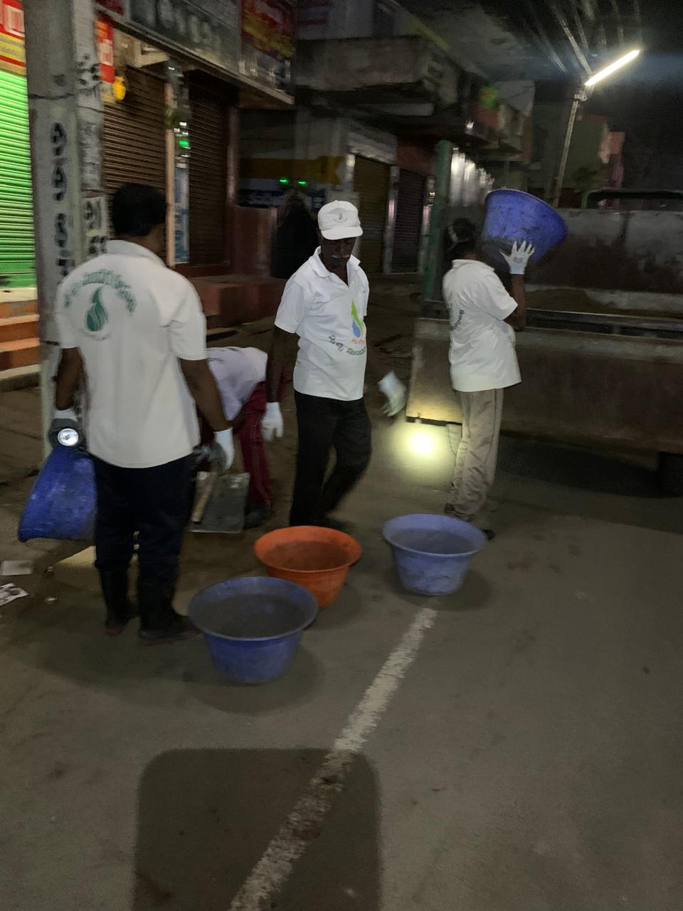 3 గుడుల నుండి ప్రార్ధనలూ, దీక్షావచనాలు వినపడుతుండగా ATM తదితర దుకాణ సముదాయాల దుమ్మూ – గడ్డీ చెత్త వదలగొట్టింది 15 మంది.