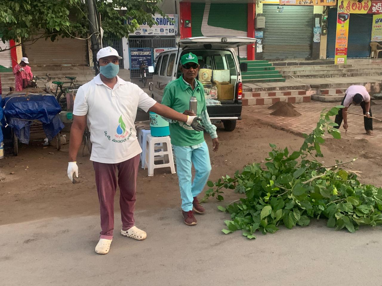 అటు 3 రోడ్ల ముఖ్య సెంటరు దాకపై కెగురుతున్న ధూళిని తట్టుకుంటూ రకరకాల దుకాణ సముదాయాల వద్ద ఊడ్చిన వారు 10 మంది.