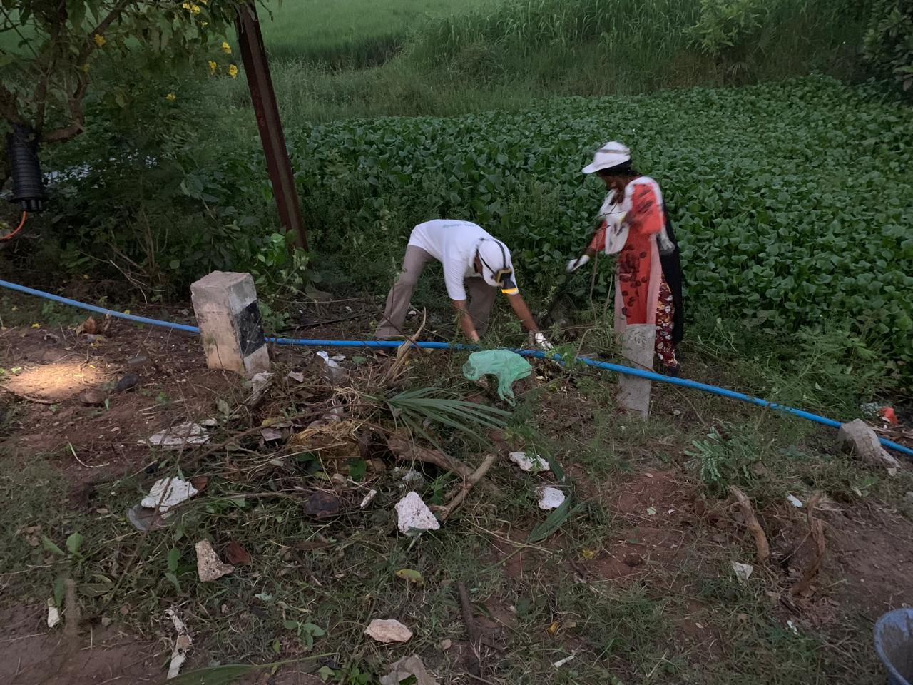 2) మురుగుకంపుకు వెరవని 2 డజన్ల మంది 2 డంపుల్ని ఖాళీ చేసి టాయిలెట్ల దక్షిణపు జాగాలో మళ్లీ క్రొత్తగా కొన్ని పూల మొక్కలు నాటుతున్నారు.