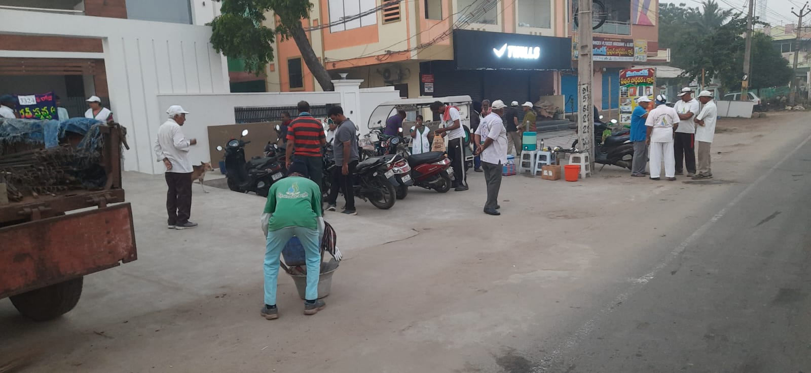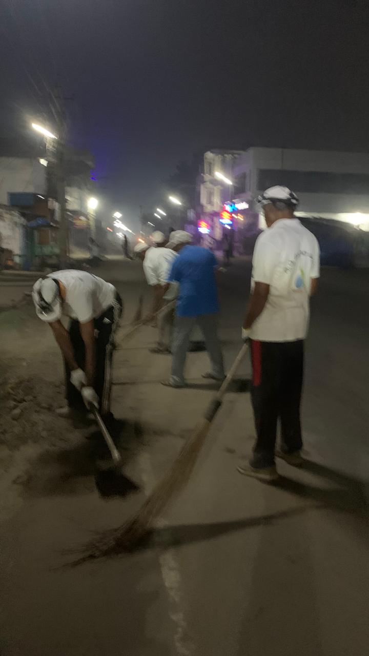 కొందరు ట్విల్స్ వస్త్ర దుకాణం ఎదురుగా, కొందరు ఉభయ మద్యం షాపుల వైపునా, రిలయన్స్ మాల్ మీదుగా, తూర్పు రామాలయం దాక- దుమ్ము దులిపి, ఇసుకను వీధి అంచులకు నెట్టి,  గడ్డి ఉంటే చెక్కి, ప్లాస్టిక్ వ్యర్ధాల్ని సేకరించుకుపోయారు!