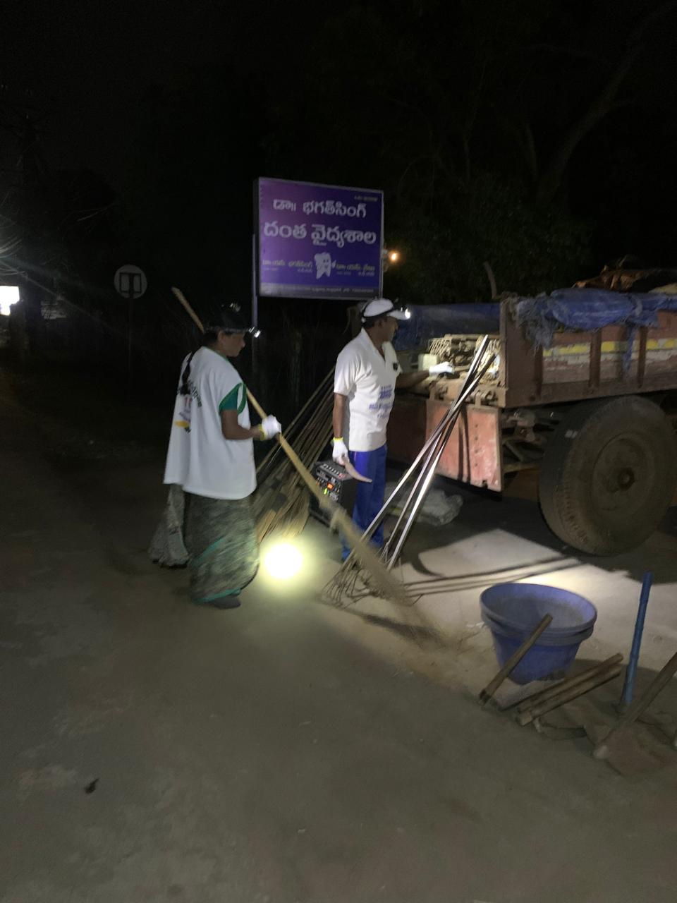 3) బందరు దారి దక్షిణంగా డజను మంది - అందులో గృహిణులు, నర్సులు, వ్యాపారులు, రైతులు, ట్రాన్స్ఫార్మ దగ్గర ఎంతగా శ్రమించి, వీధి అందం మెరుగుపరుస్తున్నదీ చూసి మెచ్చితీరుతాడు.