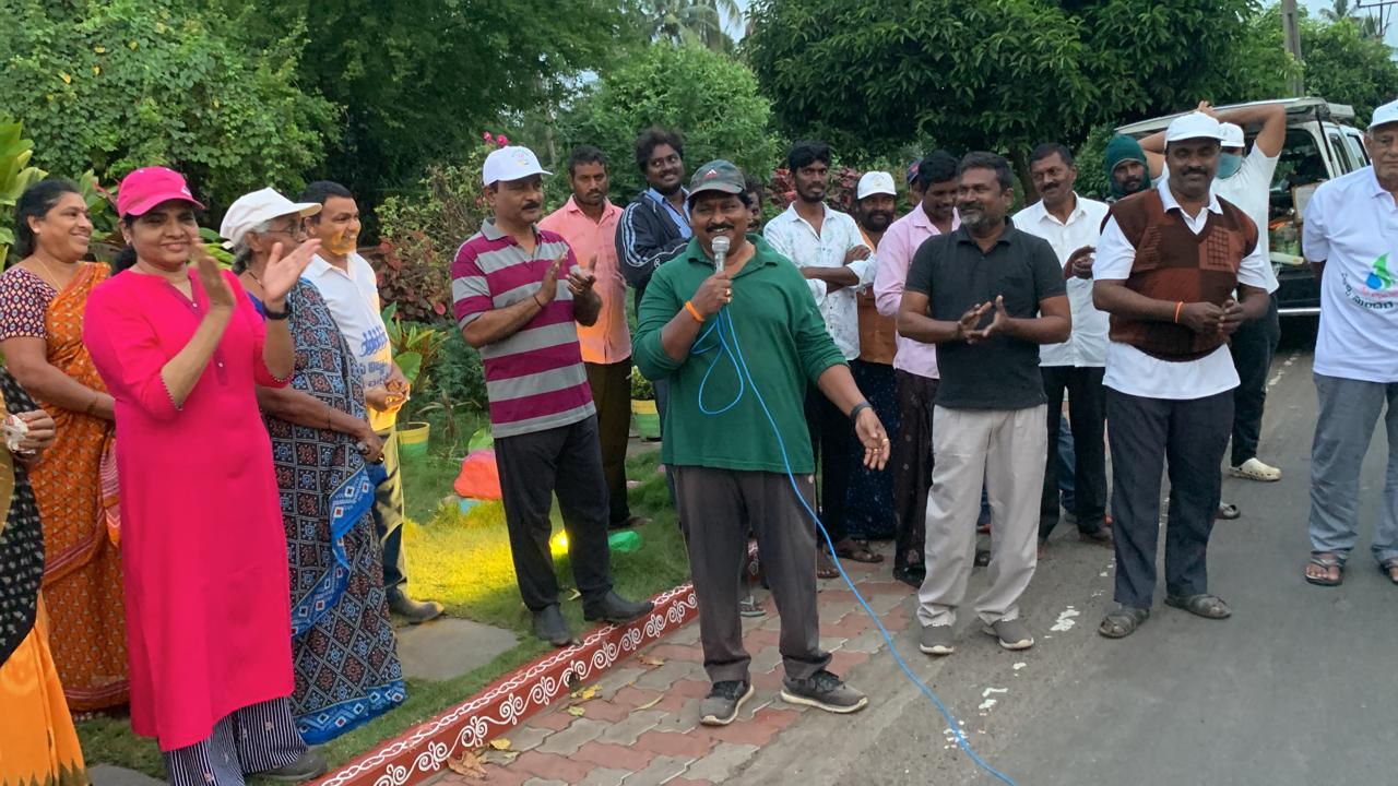 5:30 దాక శ్రమించి, అప్పటికి వచ్చిన అతిధి కార్యకర్తలతో వాటర్ ఫౌంటెయిన్ వద్దకు చేరుకున్నారు పదకొండేళ్ల క్రితం ఈ వీధి ఛండాలపు చరిత్ర ఎట్టిదో - ఎవరి శ్రమ ఫలితంగా ఇప్పుడిలా మారిందో గుర్తుచేసుకొన్నారు. కార్యకర్తల శ్రమజీవన సౌందర్యాన్నీ, ప్రజల సామాజిక బాధ్యతనీ నందేటి శ్రీను పాటలుగా విన్పించాడు. స్వచ్ఛ కార్యకర్త పైడిపాముల సర్పంచి నినాదాల ద్వారా శ్రమదాన లక్ష్యాలను చాటి చెప్పితే