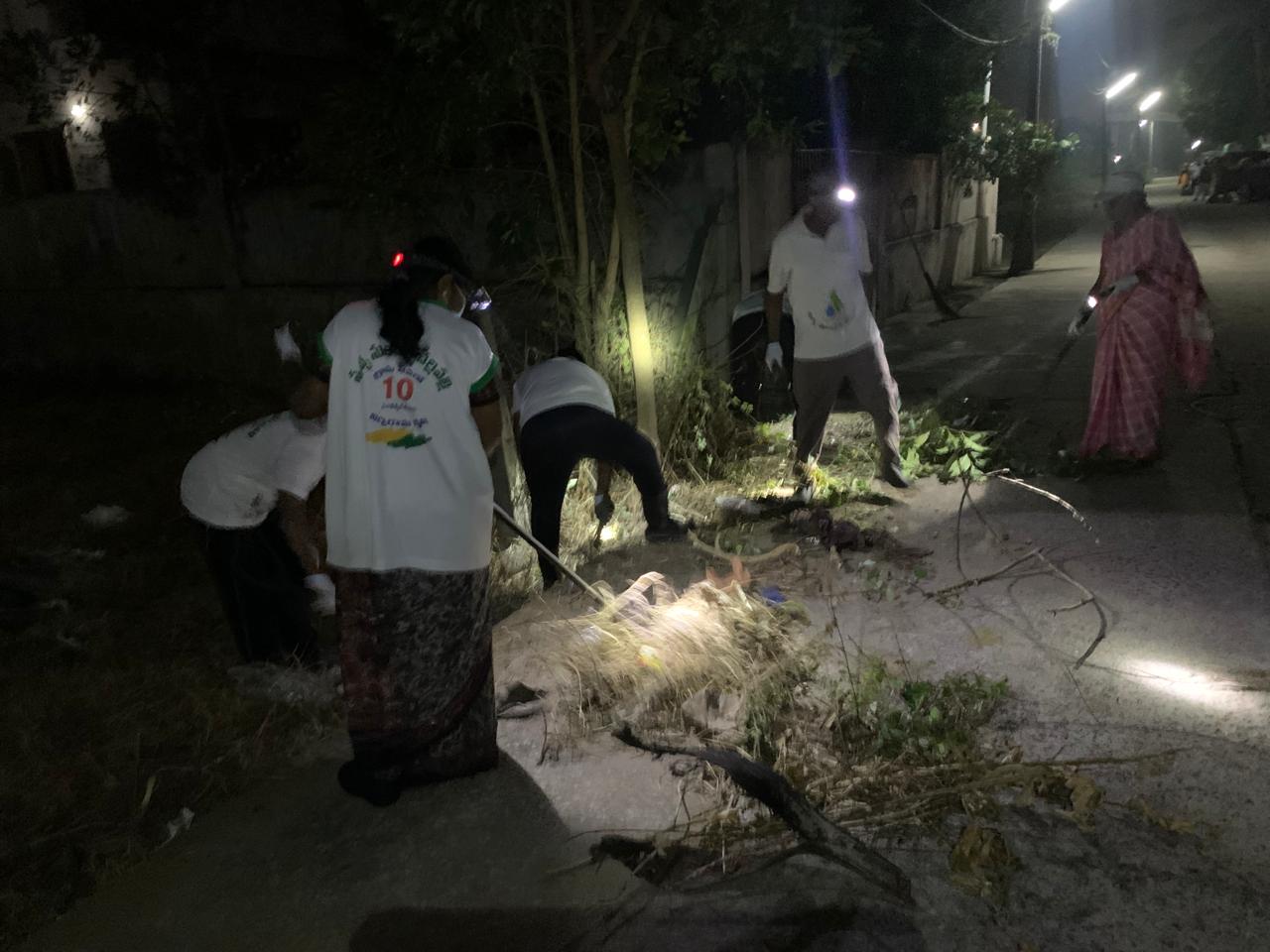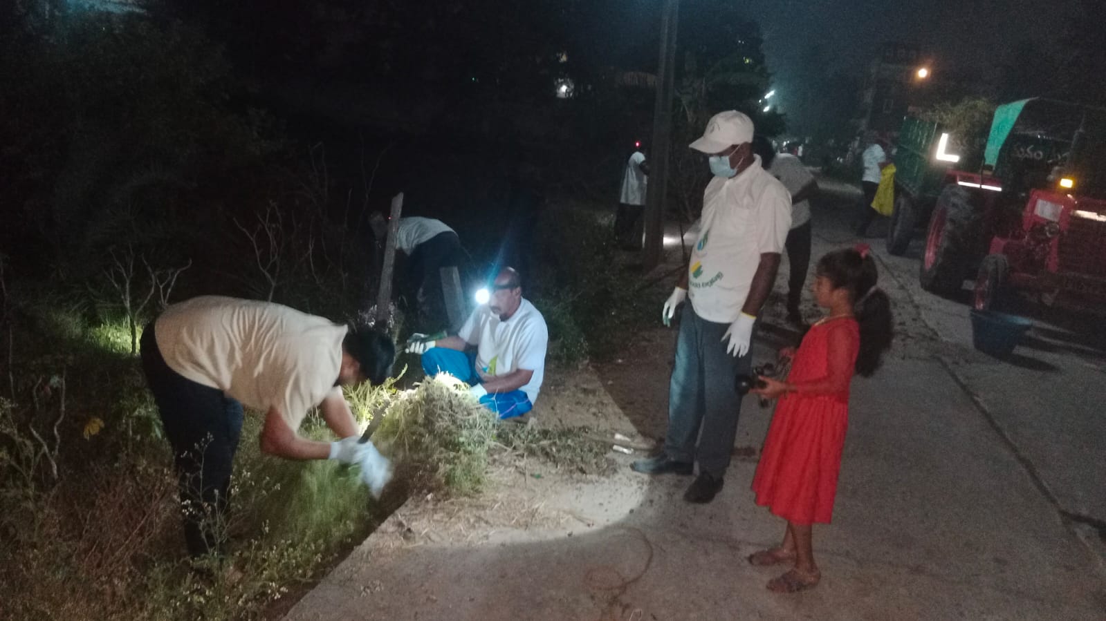 నేటి శ్రమదాన పండుగైతే 4.19 కే మొదలయింది. నిన్నటి వీధి పారిశుద్ధ్యం తరువాయిగా – వీధి సగం నుండి తూర్పుగా 100 గజాల బారునా కత్తుల, దంతెల, పారల, డిప్పల పనులన్నీ యధాప్రకారం నెరవేరాయి.