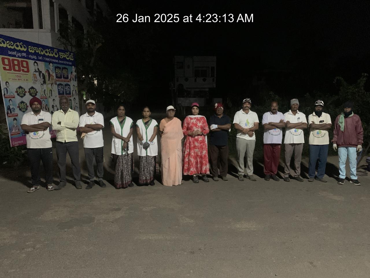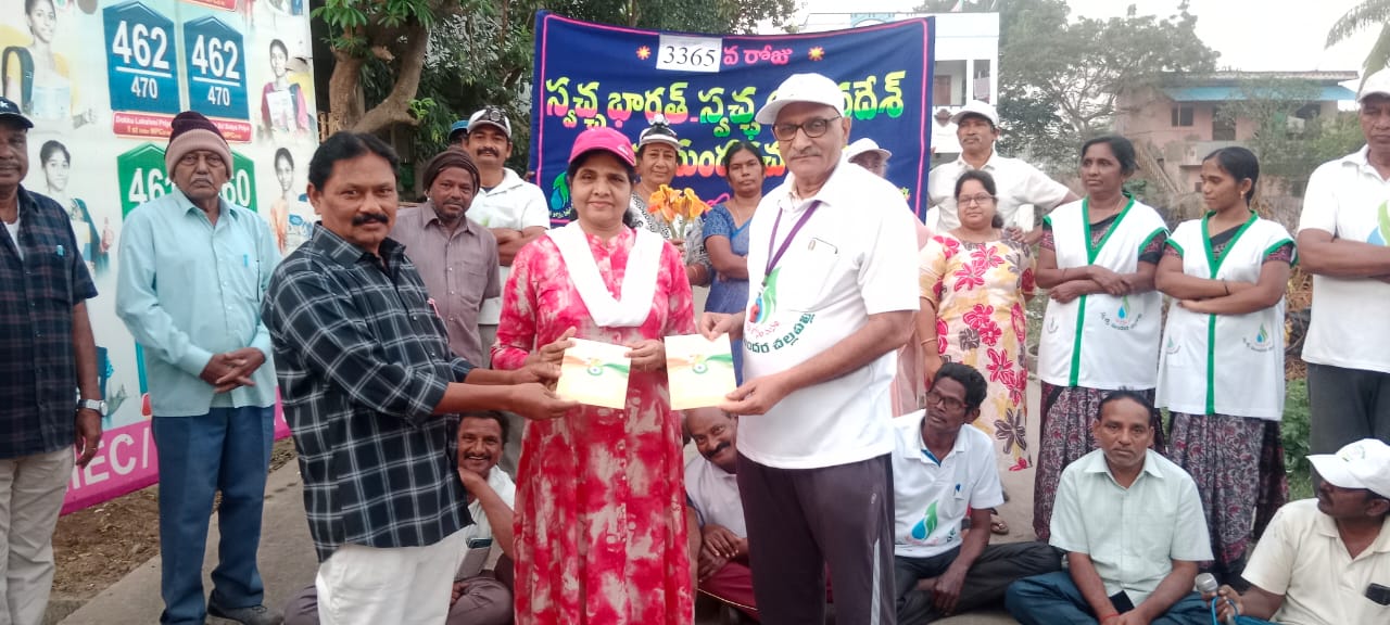 విజయా కళాశాల ఎదుట 6.30 కు జరిగిన సమావేశమును పంచాయతి అధికారి మాధవేంద్రరావు గారు నినాదాలతో ప్రారంభించి, గ్రామ పారిశుద్ధ్యమును గూర్చి వివరింపగా,