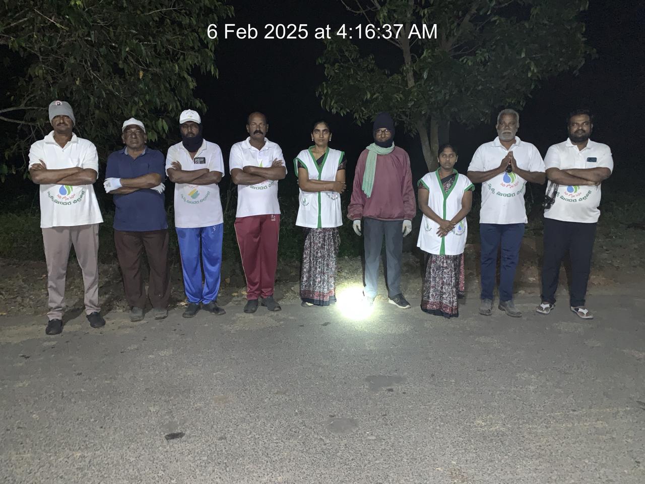 ఇది గురువారం (6.2.25) వేకువ 4.18 సమయం, తమ గ్రామ స్వచ్చ – శుభ్ర – సౌందర్యాలకు భరోసానిస్తూ పెదకళ్ళేపల్లి బాటలోని జాతీయ రహదారి దగ్గరగా మంచులో పనిలో దిగేందుకు సంసిద్ధులుగా స్వచ్చ సైనికులనబడే 10 మంది; క్రమంగా వచ్చి, వాళ్లతో జట్టు కట్టిన మరో 16 గురు; చేసిన ఘనకార్యాలు:
