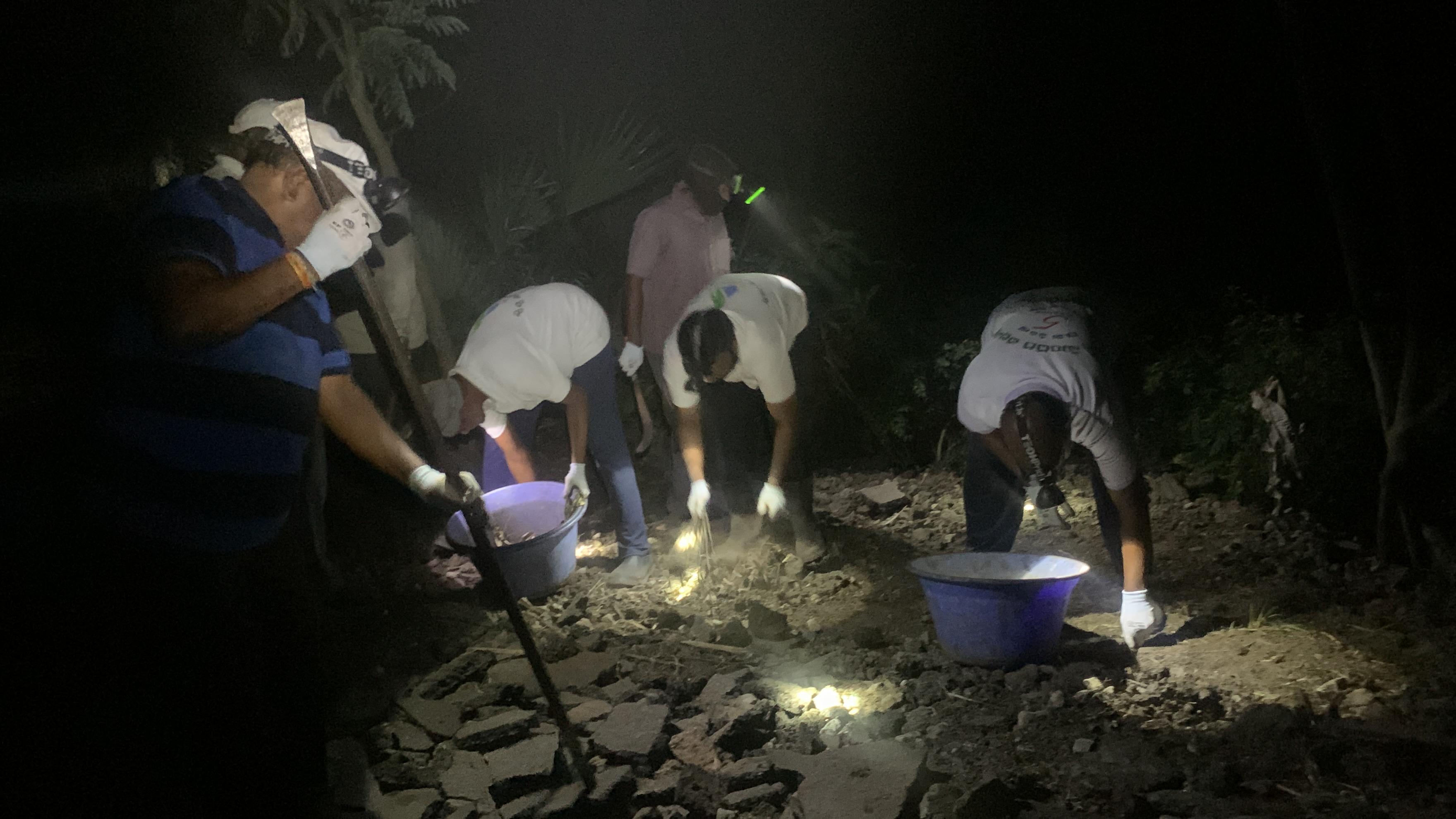సదరు స్థలమే ఈ వేకువ 2 గంటల పాటు స్వచ్ఛ కార్యకర్తలకు పెను సవాలు విసిరింది – “చాతనైతే బాగుచేయండి చూస్తా, పెద్ద వచ్చారుగా 4 కిలోమీటర్ల నుండి మూడూళ్ల మొనగాళ్ళు__” అంటూ!