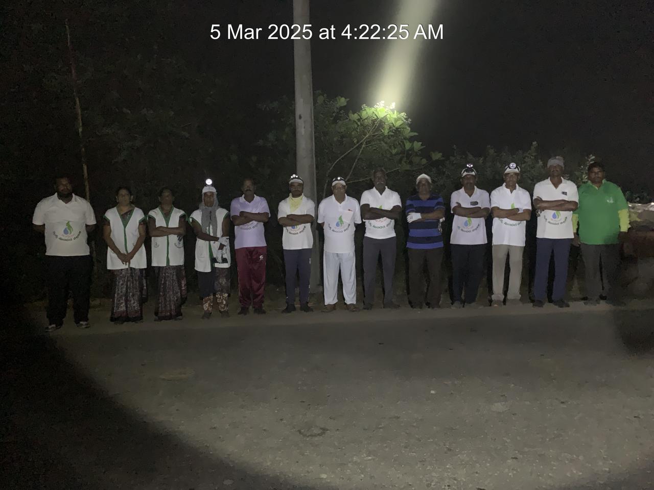 “తారీఖులు, దస్తావేజులు...” ప్రకారమైతే ఆ కష్టం బుధవారం (5.3.25) నాటిది; మా బజారు నుండి 5 కిలో మీటర్ల బహు దూరాన - వెంకటాపుర సమీపాన - ఏదో కొంపలు మునిగిపోయినట్లు- 4.20 AM కే 15 మంది స్వచ్ఛ యోధులతో దానికి శ్రీకారం! పొలోమంటూ నాలుగూళ్ళనుండి మంచు - చీకట్లో దారి వెతుక్కొంటూ వచ్చి కలిసిన 27 మంది తో మొత్తం 42 మంది పాల్గొన్నారు!