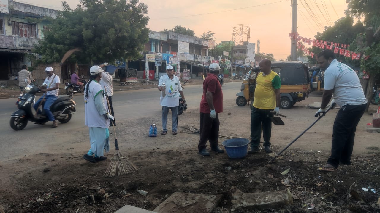 వేకువ జామున 4.19 ని.లకు బస్టాండు ప్రాంగణంలో 10 మంది కార్యకర్తలతో ప్రారంభమయిన స్వచ్ఛ సేవలు కొద్ది సేపట్లో ఒక్కొక్కరుగా చేరికతో 35 మందితో బస్టాండు వెనుక భాగాన్ని కార్యకర్తలు చూడచక్కగా తయారుచేశారు.