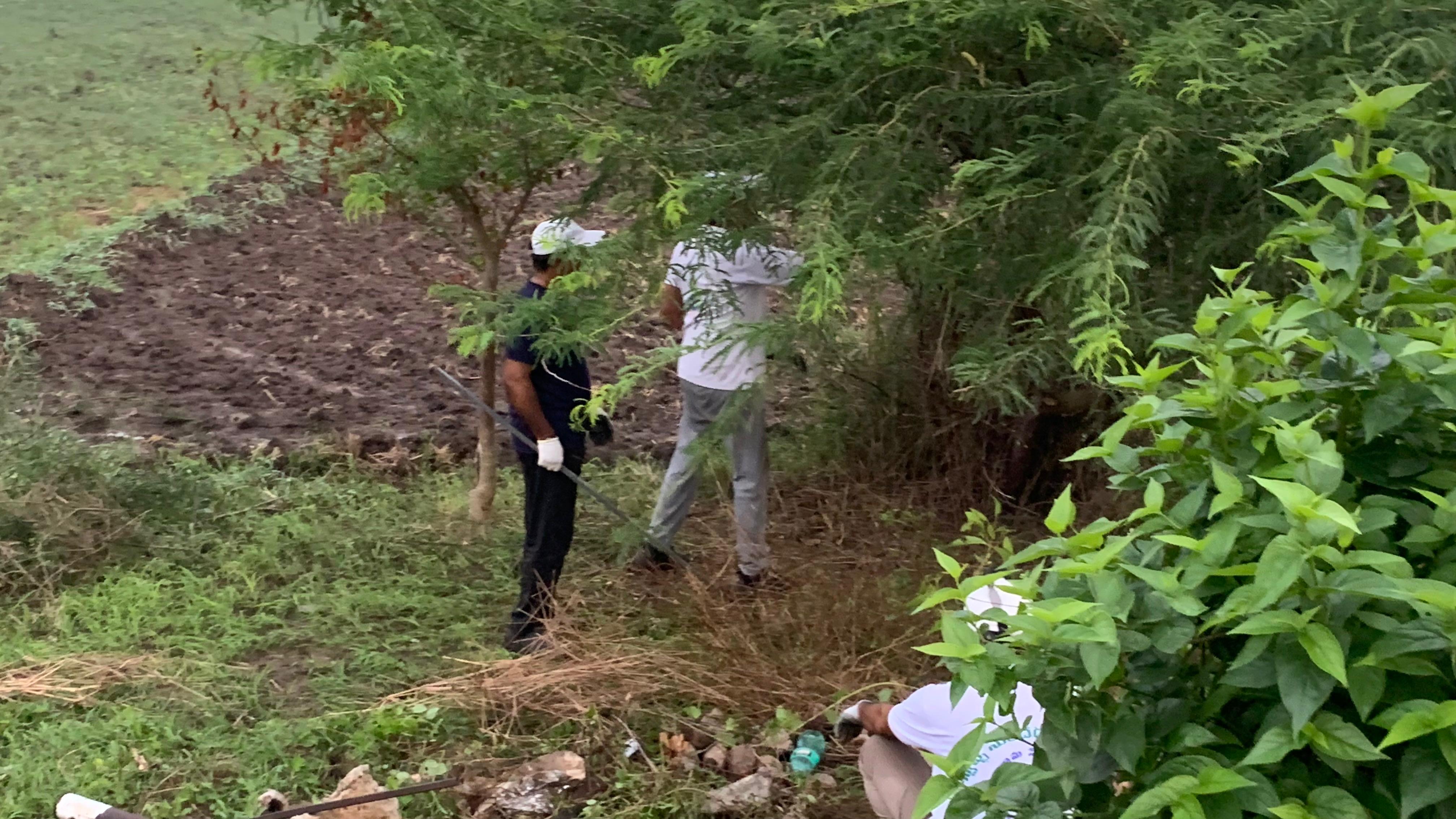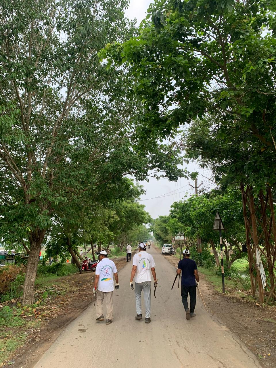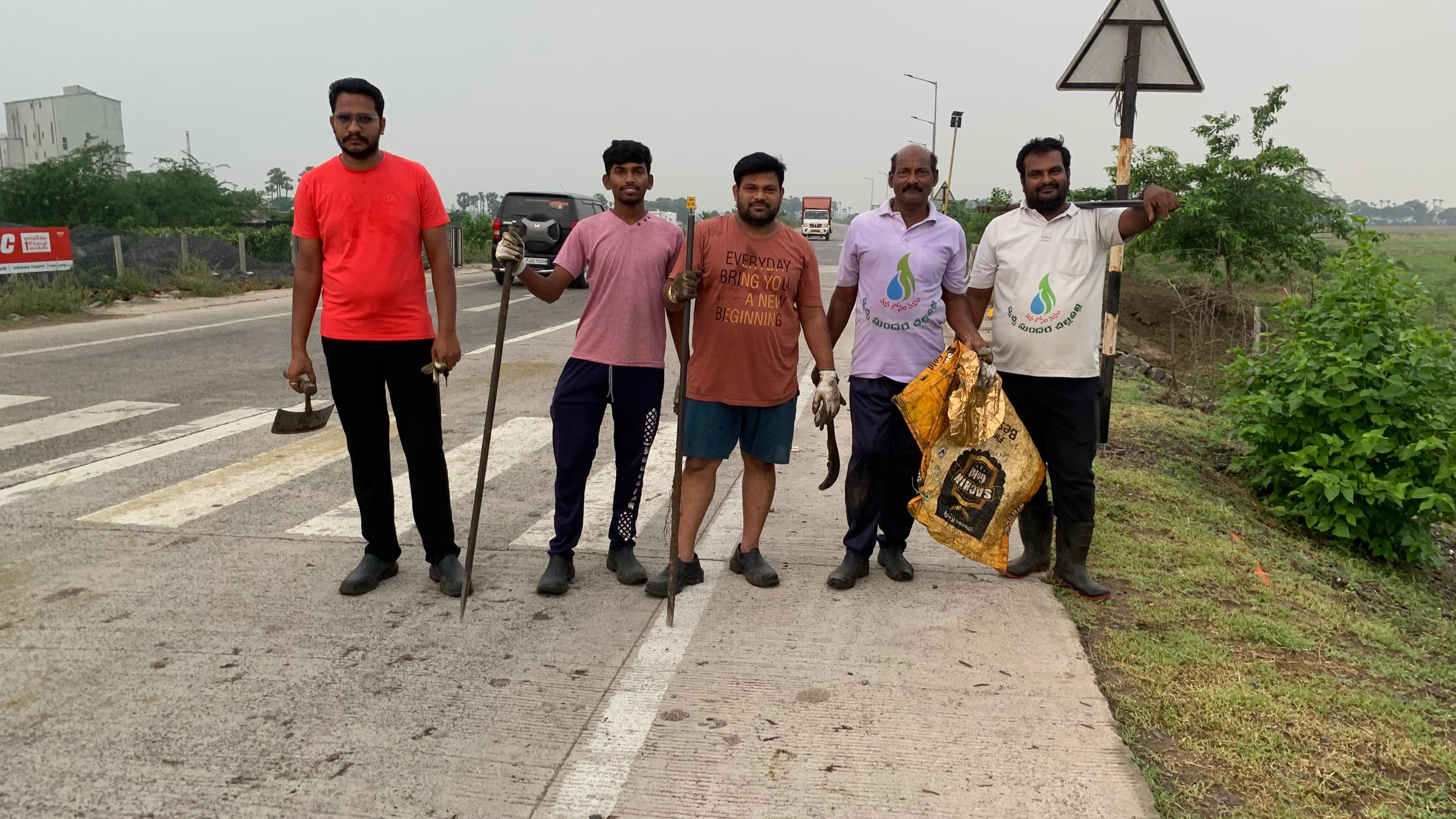 గడ్డి కోత యంత్రంతో రోడ్డు అంచు భాగం కటింగ్ చేయడం జరిగింది. కొట్టిన గడ్డి, తుక్కును కొంతమంది లోడ్ చేయడం జరిగింది. అడుగున ముళ్ళ కంపతో పైన పిచ్చి తీగ ప్రాకి అస్తవ్యస్తంగా ఉన్న కొంత భాగాన్ని నలుగురు కార్యకర్తలు కొద్ది సేపు శ్రమించి ఆ భాగాన్ని చక్కగా పరిశుభ్రపరిచారు.