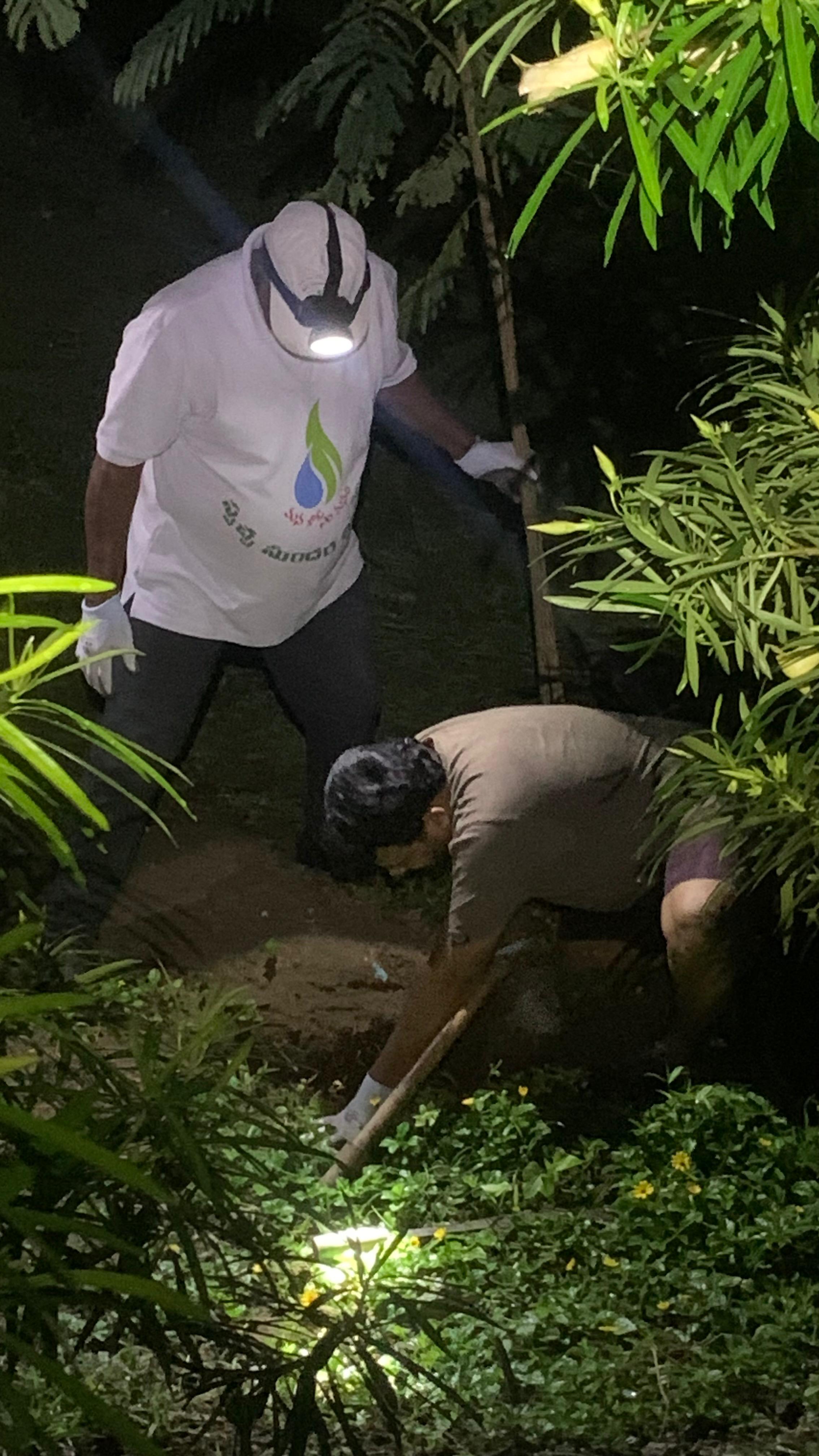 వేకువ జాము 4:15 ని. హైవే రోడ్ లోని బస్టాప్ వద్ద 10 మంది కార్యకర్తలతో పని మొదలై ఎంతో ఉత్సాహవంతంగా జరిగింది. రోడ్డు దిగువ భాగాన నీడనిచ్చే చెట్లు నాటడానికి ముందుగా సిద్దం చేసుకున్న గోతులలో తురాయి, స్పితోడియా, నేరేడు మొత్తం కలిపి 70 మొక్కలను ఇద్దరు ఇద్దరు కార్యకర్తలు కలిసి బృందాలుగా ఏర్పడి మొక్కలను జాగ్రత్తగా నాటడం జరిగింది.