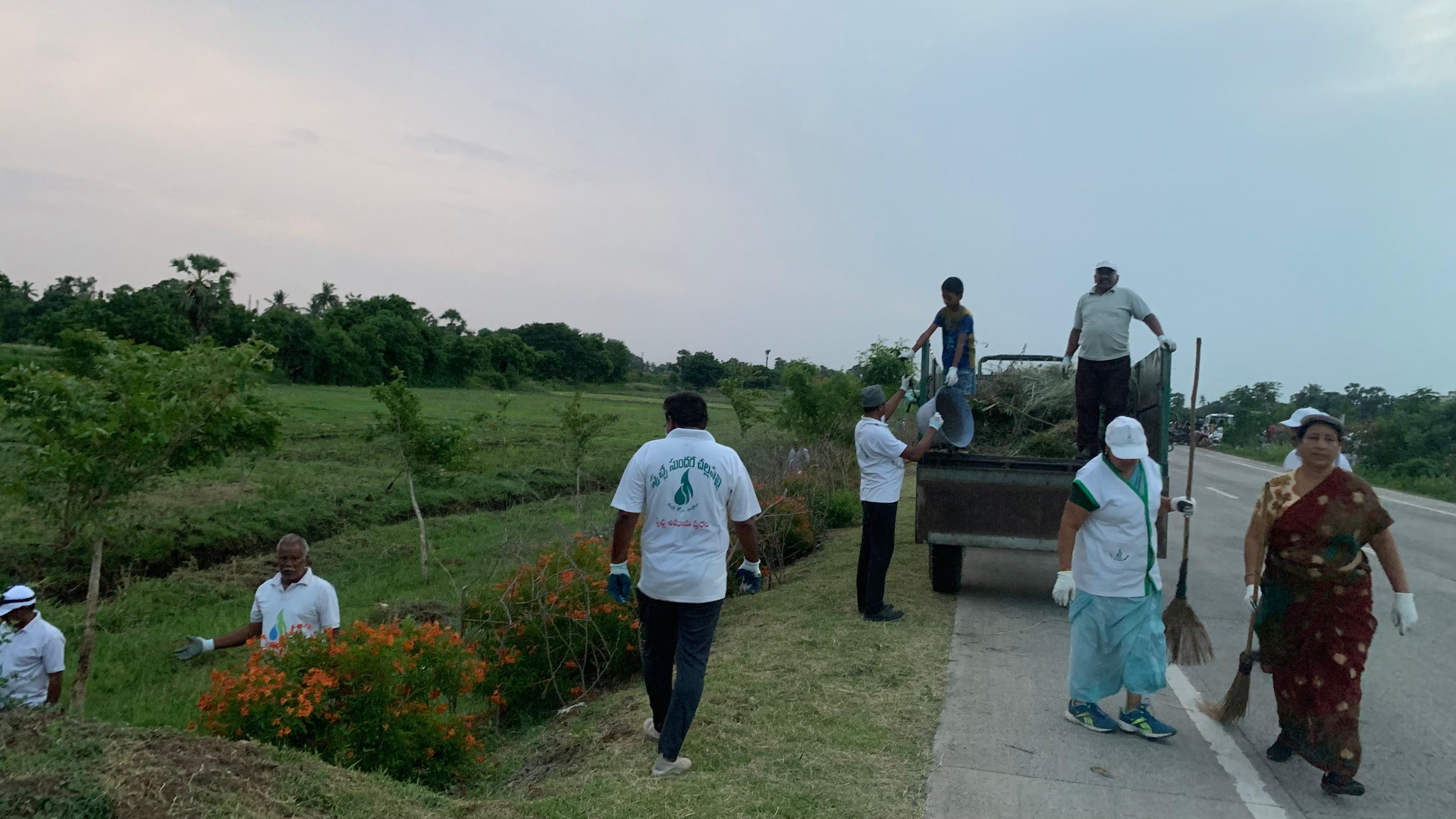హైవే రోడ్ లోని కళ్యాణ మండపం ఎదురుగా దారి పొడవునా రోడ్డు క్రింది భాగంలో ఏపుగా పెరిగిన కలుపు గడ్డిని శుభ్రం చేస్తూ, అక్కడక్కడా ఉన్న ముళ్ల పొదలను తొలగించడం, అంతకు ముందు పెరిగి వంగిపోయిన నీడనిచ్చు మొక్కలకు కర్రలను పాతి నిటారుగ ఉండే లాగున కట్టి సరిచేయడం జరిగింది.