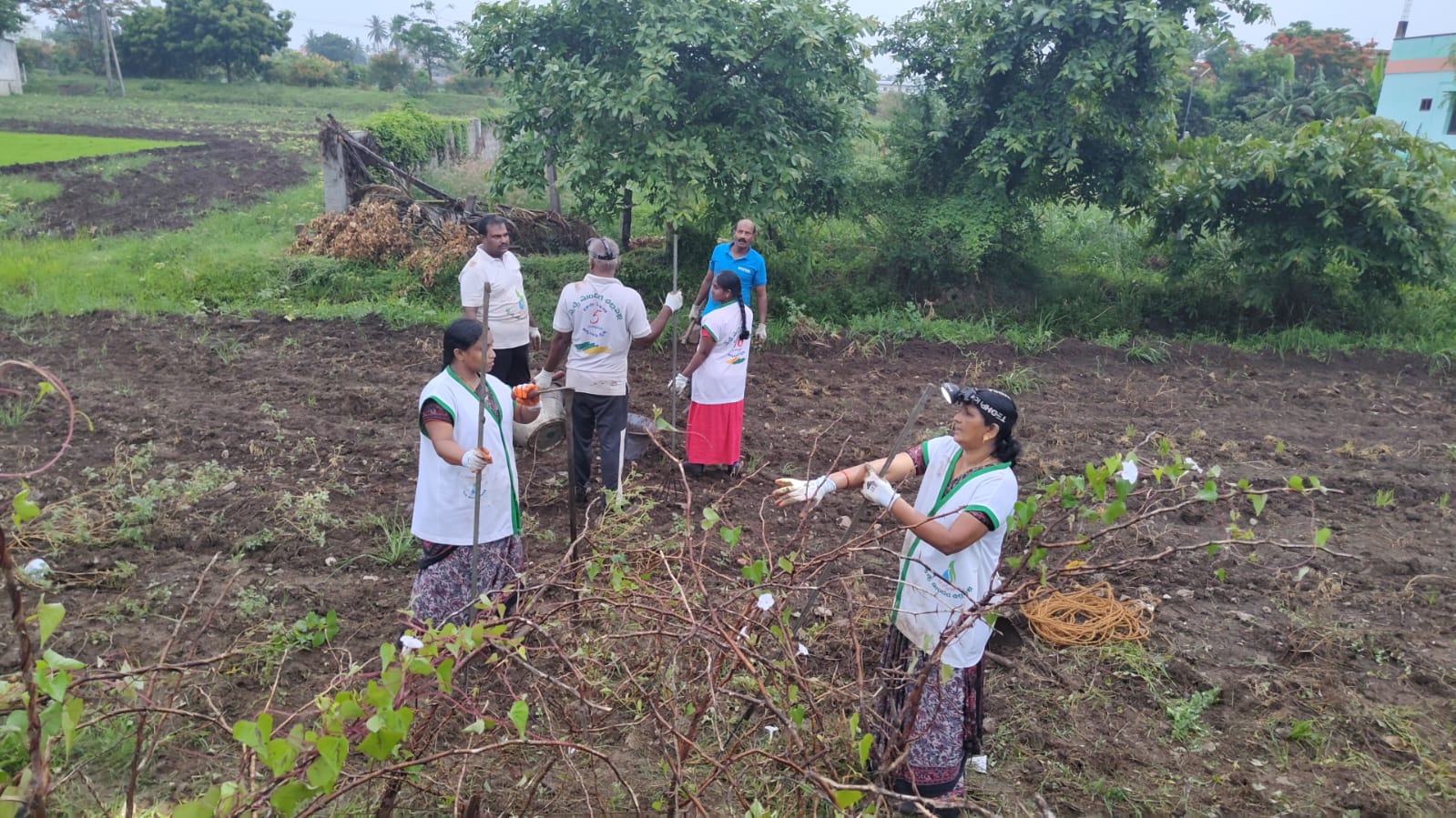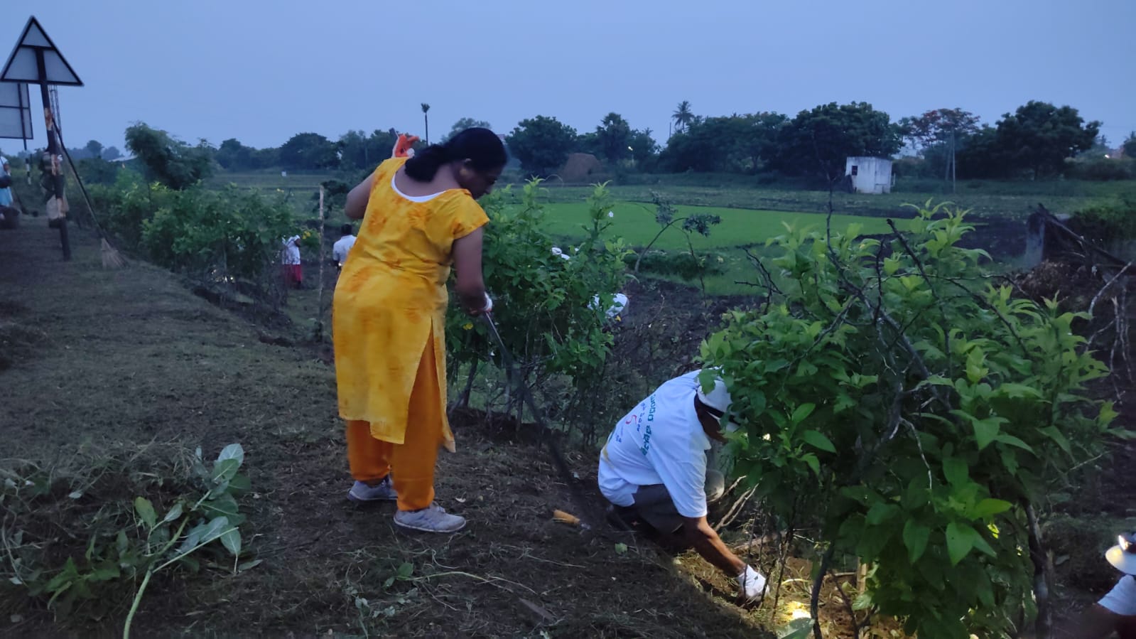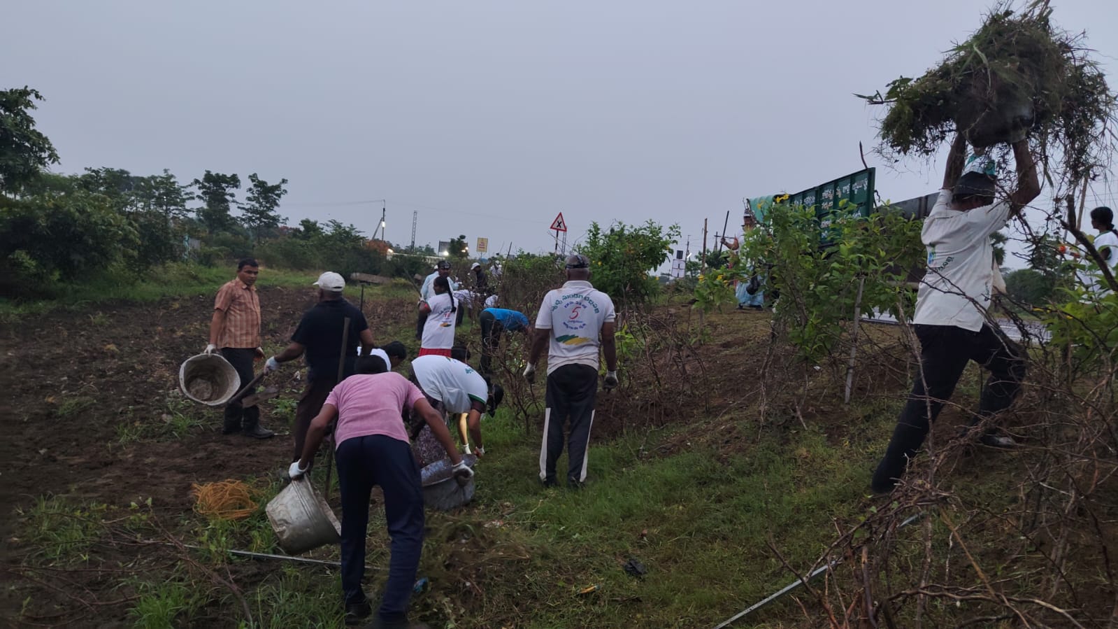రోడ్ మార్జిన్ లో గడ్డిని మిషన్ తో కట్ చేయగా ఆ తుక్కును మహిళా కార్యకర్తలు కొంతమంది గొర్రులతో లాగి ప్రోగు చెయ్యడం జరిగింది. ఈ రోజు ప్రారంభం నుండే ఒకరిద్దరు మహిళామణులు కత్తులు చేతపట్టి కలుపు గడ్డిని కోసి పనిలో ముందున్నారు. చిన్నపాటి వర్షపు జల్లులు పడుతూ ఉన్నా సరే కార్యకర్తలు మాత్రం మా పని మాదే అన్నట్లుగా చెక్కు చెదరని విశ్వాసంతో ఆ ప్రాంతమంతా ఎంతో శుభ్రంగా తీర్చిదిద్దారు.