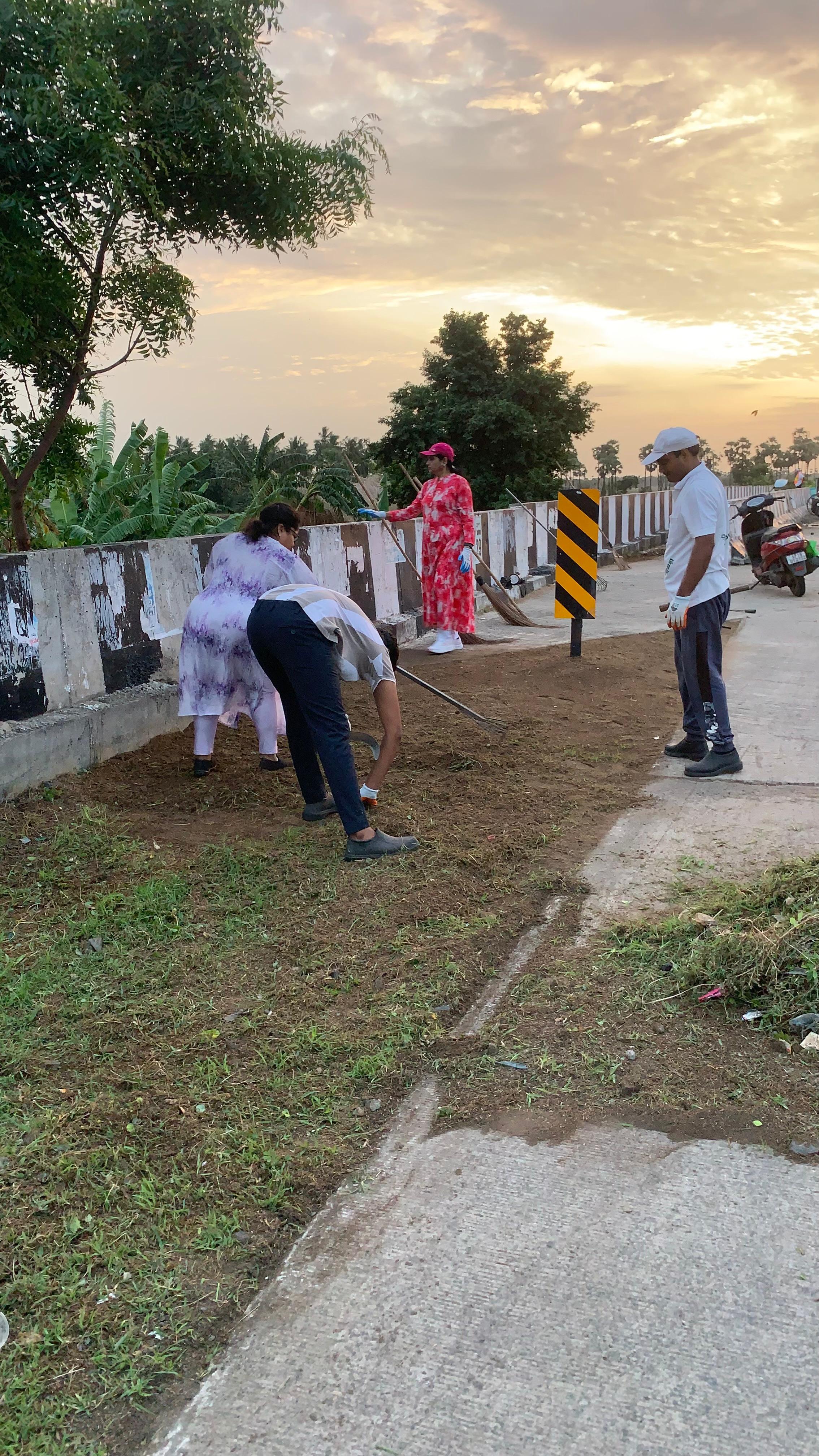 14 మంది కార్యకర్తలతో 21 6 జాతీయ రహదారి వంతెన (గంగులవారిపాలెం సమీపాన) స్వచ్ఛ శుభ్ర కార్యదీక్ష మొదలై పైభాగాన ఒక ప్రక్క అపరిశుభ్రంగా ఉన్న భాగాన్ని బాగుచేయడం, వంతెన మీదకు మట్టి చేరి దానిపై మొలచిన గడ్డిని పూర్తిగా తీసివేయడం, మందుబాబులు పీఠం వేసి కూర్చుని రోజుల తరబడి వేసిన ఖాళీ మద్యం సీసాలను ప్లాస్టిక్‌ గ్లాసులను, పగులగొట్టిన గాజు పెంకులను ఏరి వేయడం మహిళా కార్యకర్తల వంతు అయింది.