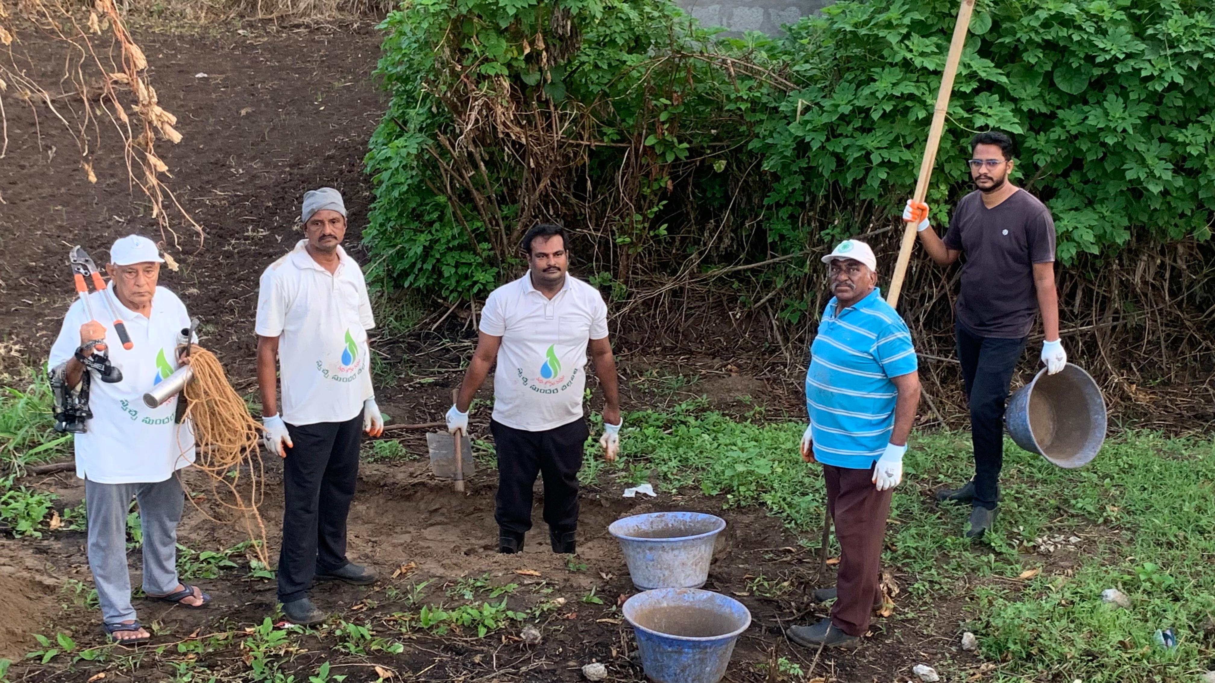 ప్రారంభించబడింది. రోడ్డు క్రింది భాగంలో కార్యకర్తలు పిచ్చి మొక్కలను తీసి శుభ్రం చేస్తూ పెద్ద మొక్కల పాదులలో ఉన్న కలుపును మొత్తం ఏరివేయడం జరిగింది.