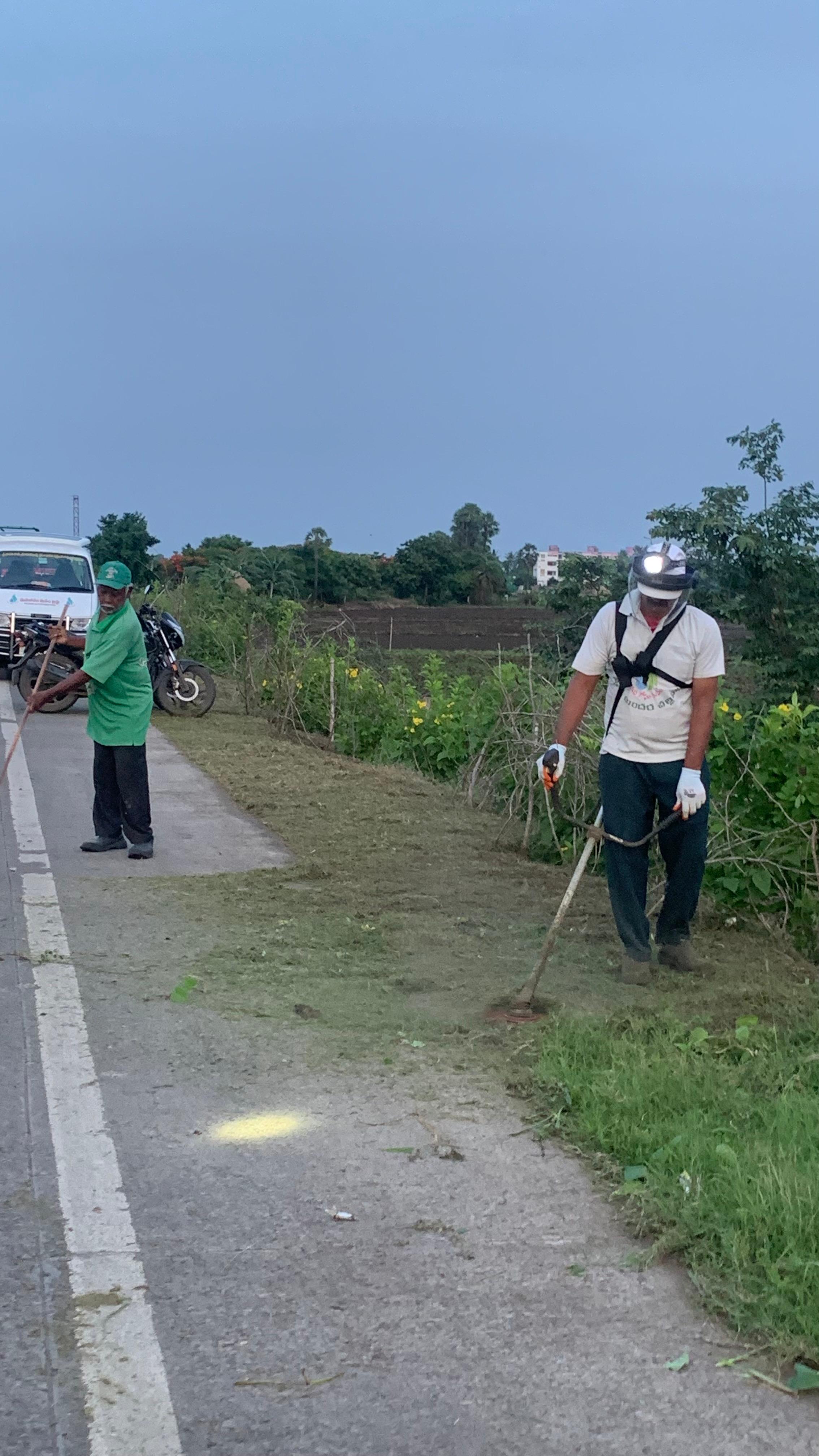 రహదారి ప్రక్క మార్జిన్ లో ఏపుగా పెరిగిన గడ్డిని మాత్రం కటింగ్ మిషన్ తో కత్తిరించడం, వెనుక చీపుళ్ళతో శుభ్రపరచడం ఈరోజు మాత్రం 23 మంది కార్యకర్తలు వారి శక్తి కొలది శ్రమించి హైవే ను చల్లపల్లి పొడవునా చాలా ప్రత్యేకతగా అనిపించేట్లుగా తయారుచేస్తున్నారు.