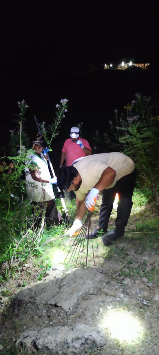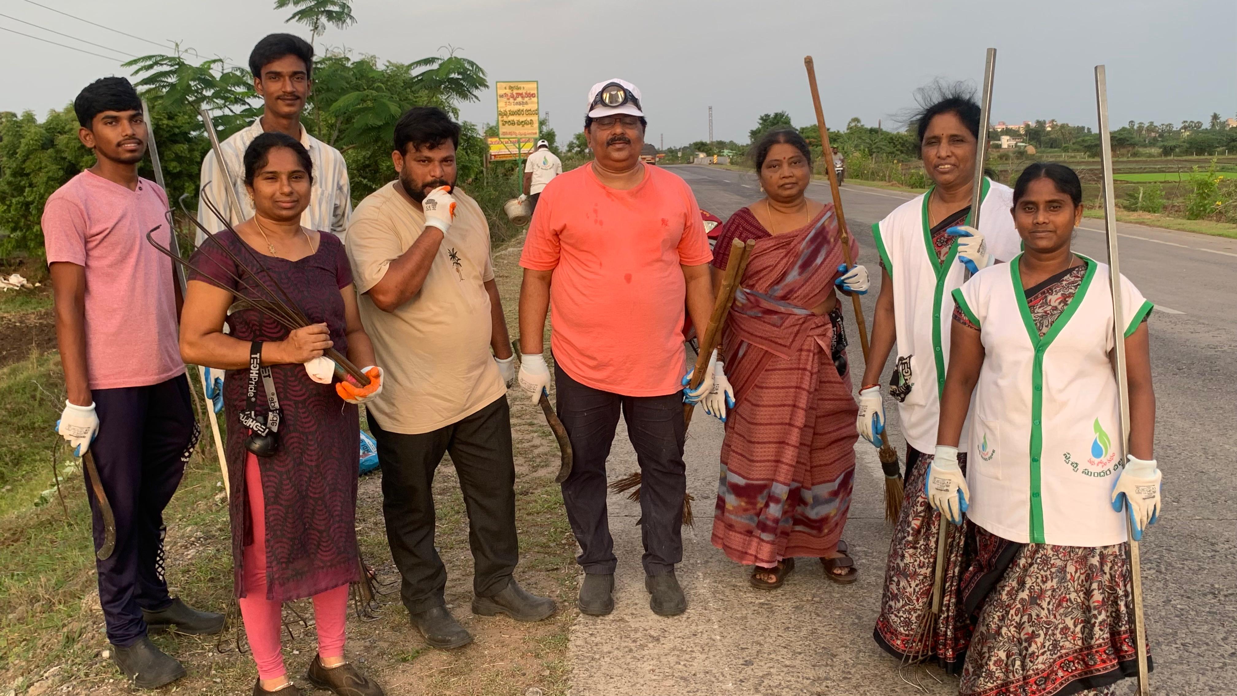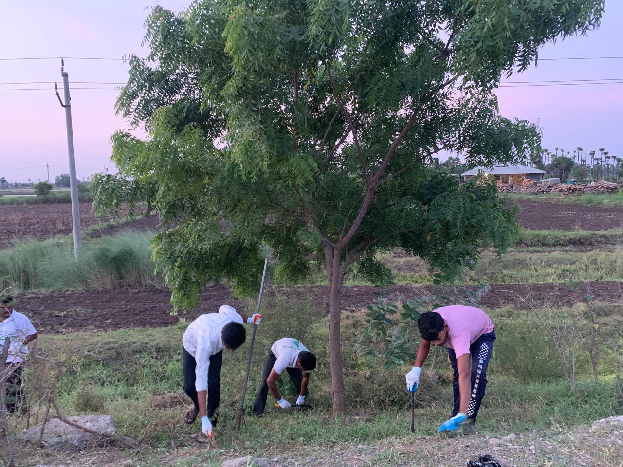 హైవే పై క్లబ్ రోడ్డుకు సమీపంలో 4:14 నిమిషాలకు 12 మంది కార్యకర్తలతో ఈరోజు పని మొదలైంది. క్రమక్రమంగా కార్యకర్తలు పెరుగుతూ రహదారికి పొడవునా మనం పెట్టిన మొక్కలలో వచ్చిన విపరీతమైన కలుపు, మొక్కలను చుట్టుముట్టి పెరుగుదలకు ఆటంకమైన పిచ్చి దొండ తీగ మొదలగు వాటిని లాగివేసి మొక్కలకు 5 అడుగుల దూరం వరకు క్రింది భాగంలో కార్యకర్తలు శుభ్రం చేసుకుంటూ ముందుకు సాగారు.