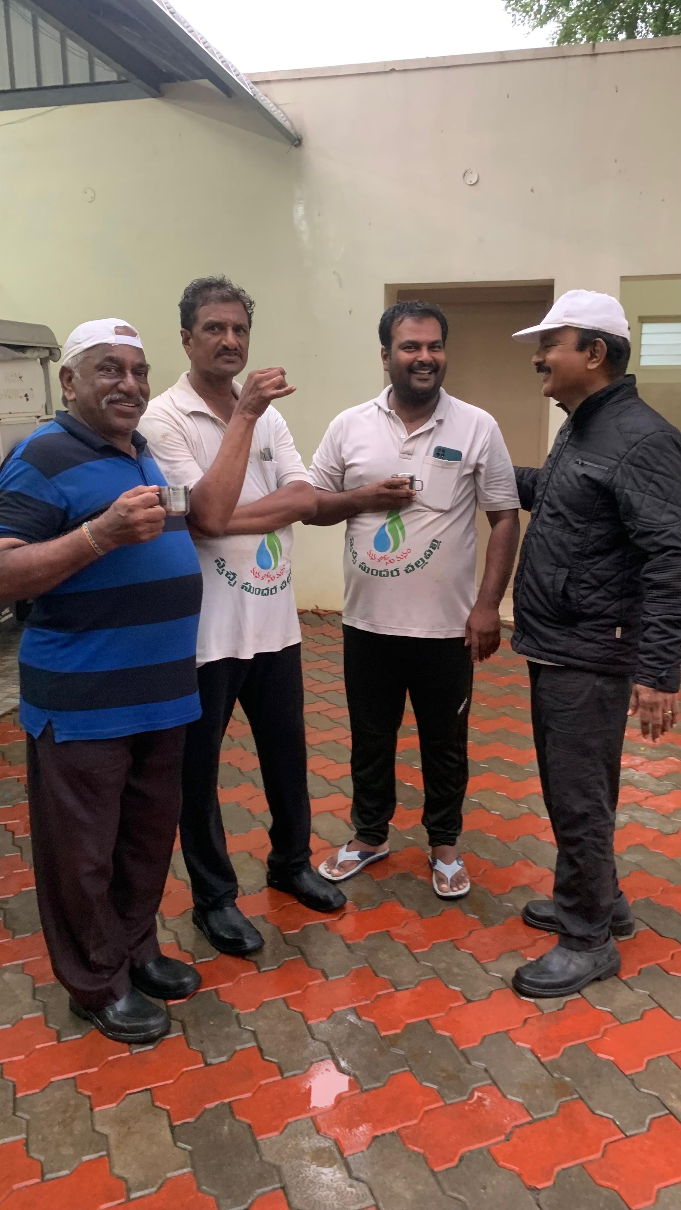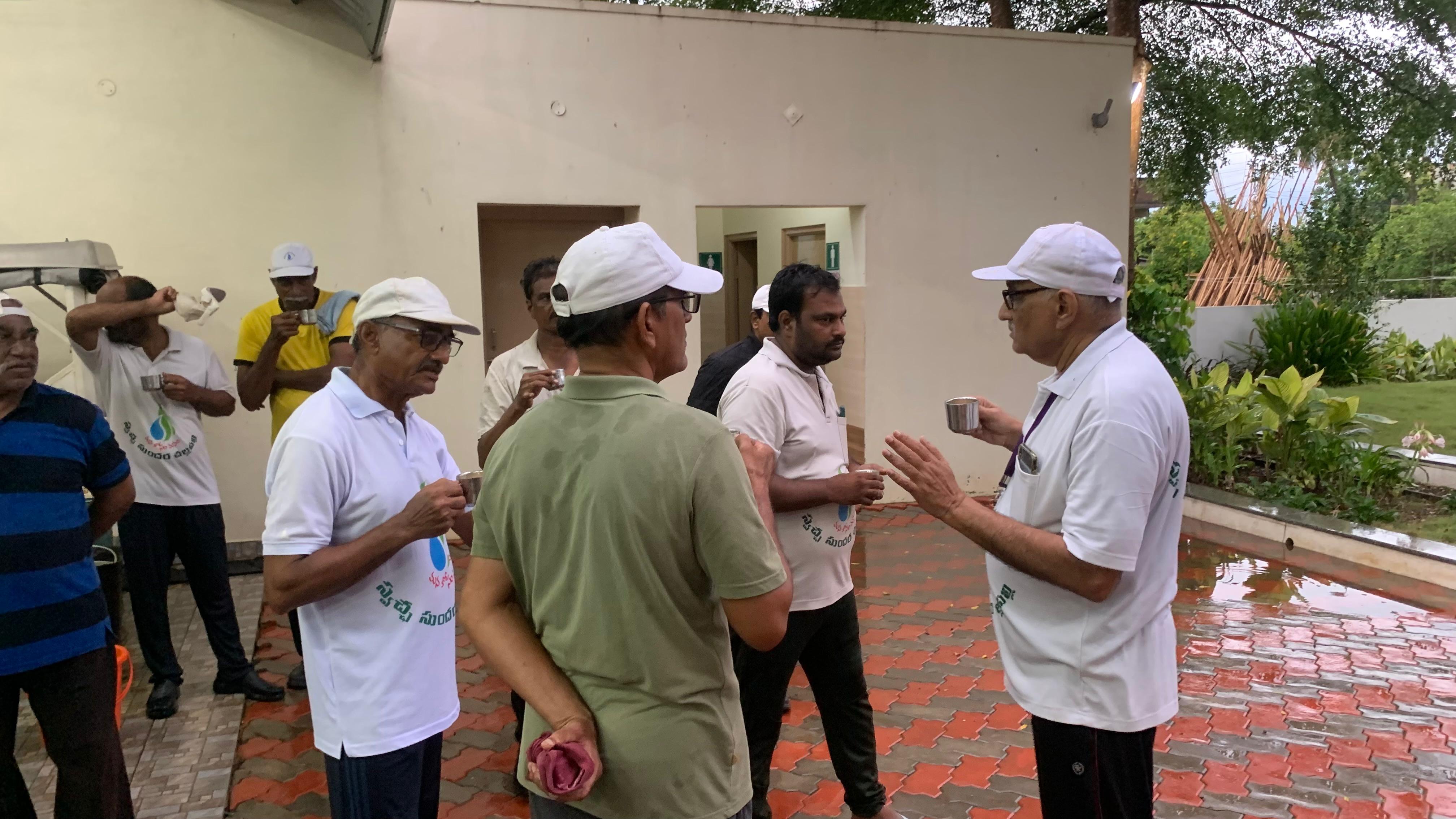 వర్షంలోనే తడుస్తూ ఆసుపత్రి వద్ద ఉన్న పద్మాభిరామం ప్రాంగణంకు చేరుకోగా తడిసి చలితో వణుకుతున్న కార్యకర్తలకు వేడి వేడి కాఫీ కొంత ఉపశమనం కలిగించింది.