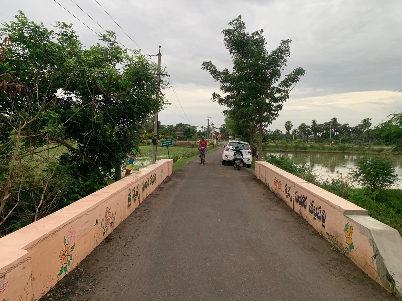 ముగ్గురు బలమైన కార్యకర్తలు వంతెన వద్ద ఎప్పటి నుండో మురుగు కాల్వలోకి పడిపోయేట్లుగా ఉన్న వంతెనలోని ఒక ముక్కను ట్రాక్టర్ సహాయంతో రోడ్డు అంచుకు చేర్చారు.