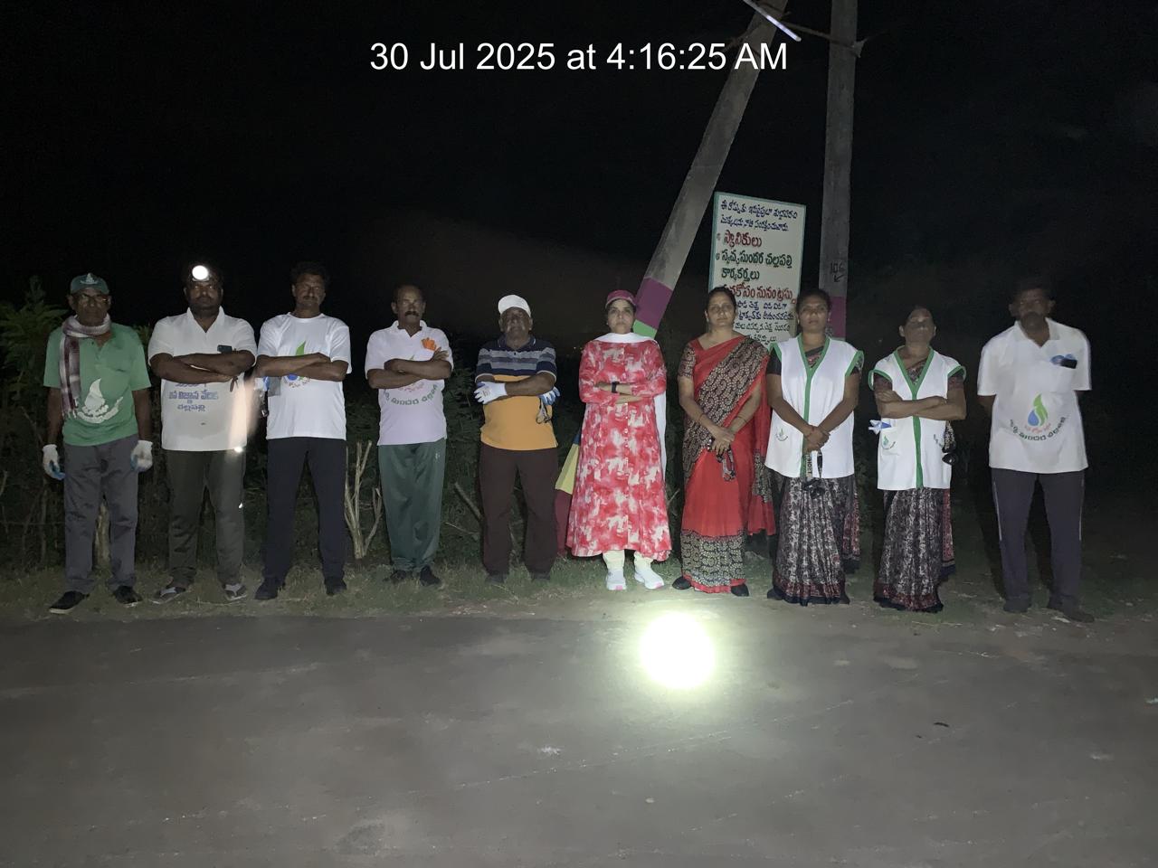 వేకువ 4:16 నిమిషాలకు మొదటి ఫోటో లో ఉన్న 11 మంది కార్యకర్తలతో మొదలైన స్వచ్చ సేవ కాలక్రమేణా 29 మందికి చేరింది.