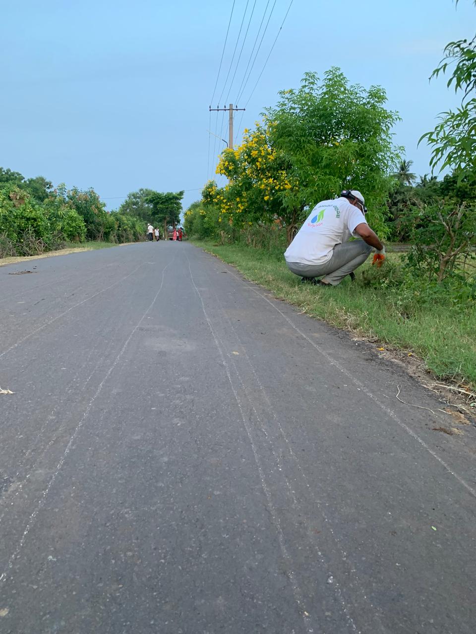 ఒక కార్యకర్త రోడ్డుకు అంచున ఎత్తుగా పెరిగిన గడ్డిని మిషన్ సహాయంతో కత్తిరించడం జరిగింది.