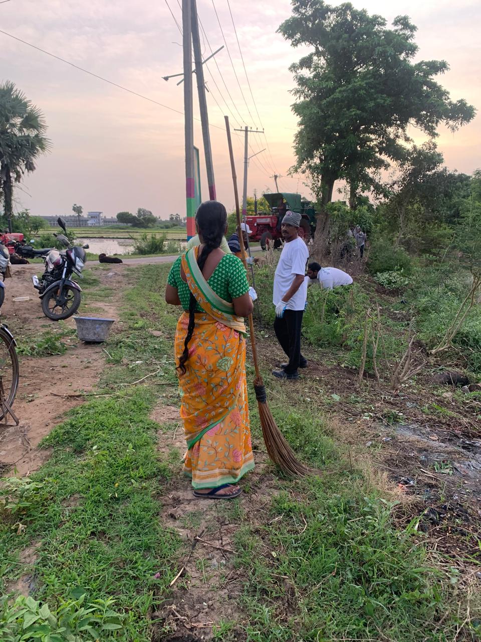 నేటి కార్యక్రమంలో ట్రాక్టర్ లో ఉన్న నచ్చిన పనిముట్లు తీసుకుని గంగులవారిపాలెం రోడ్డులో గతంలో పెట్టిన మామిడి మొక్కల మొదళ్ళ వద్ద పెరుకుపోయిన పిచ్చి గడ్డిని, తుక్కును చేతులతో లాగి మొదళ్ళ వద్ద చెట్టు చుట్టూ శుభ్రం చేశారు.