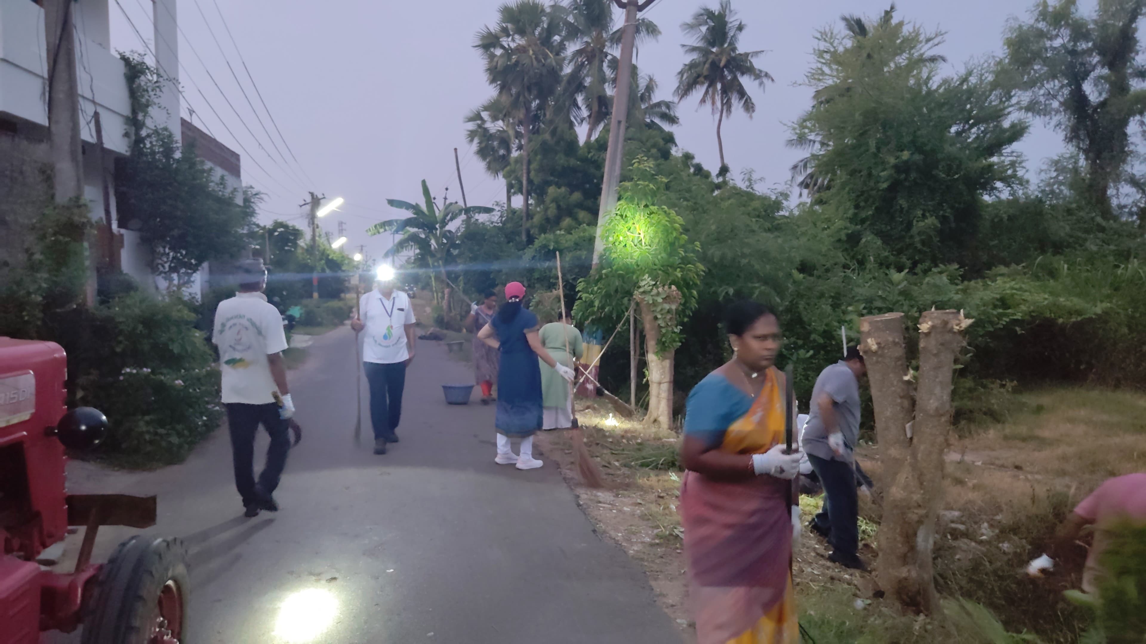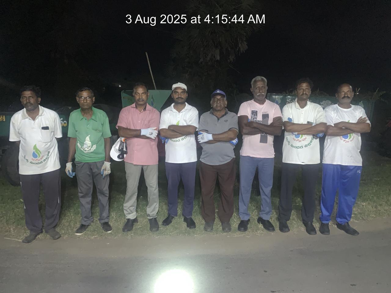 తెల్లవారు జామున 4:15 నిమిషాలకు 9 మంది కార్యకర్తలు గంగులవారిపాలెం దారి మలుపులో ఫోటో దిగి పనిముట్లను చేత బట్టి గ్రామ సేవకు సిద్ధమవగా కొందరు బండ్రేవు కోడు కాలువ కట్ట క్రింద కొంతభాగం చేయుటకు వెళ్ళగా మరికొంతమంది గంగులవారిపాలెం దారిలో (ఆసుపత్రి వైపు) ఎడమ ప్రక్క డ్రైను వెంట ఉన్న చెత్తా చెదారాలు, ముళ్ల కంప, పిచ్చి తీగలను నరికివేసి బాగు చేసుకుంటూ కార్యకర్తలు నాటిన మొక్కలను బయటకు తీశారు.