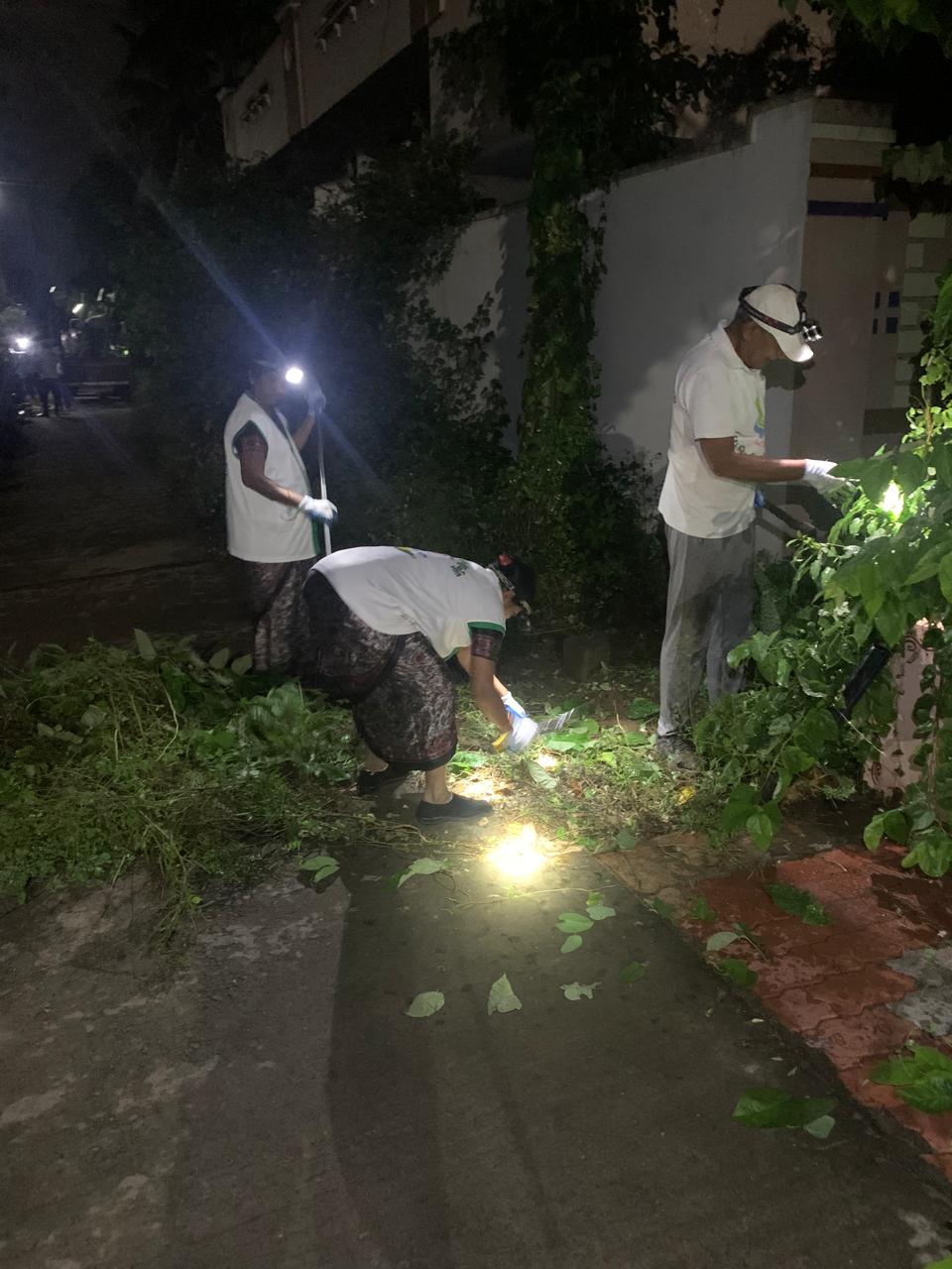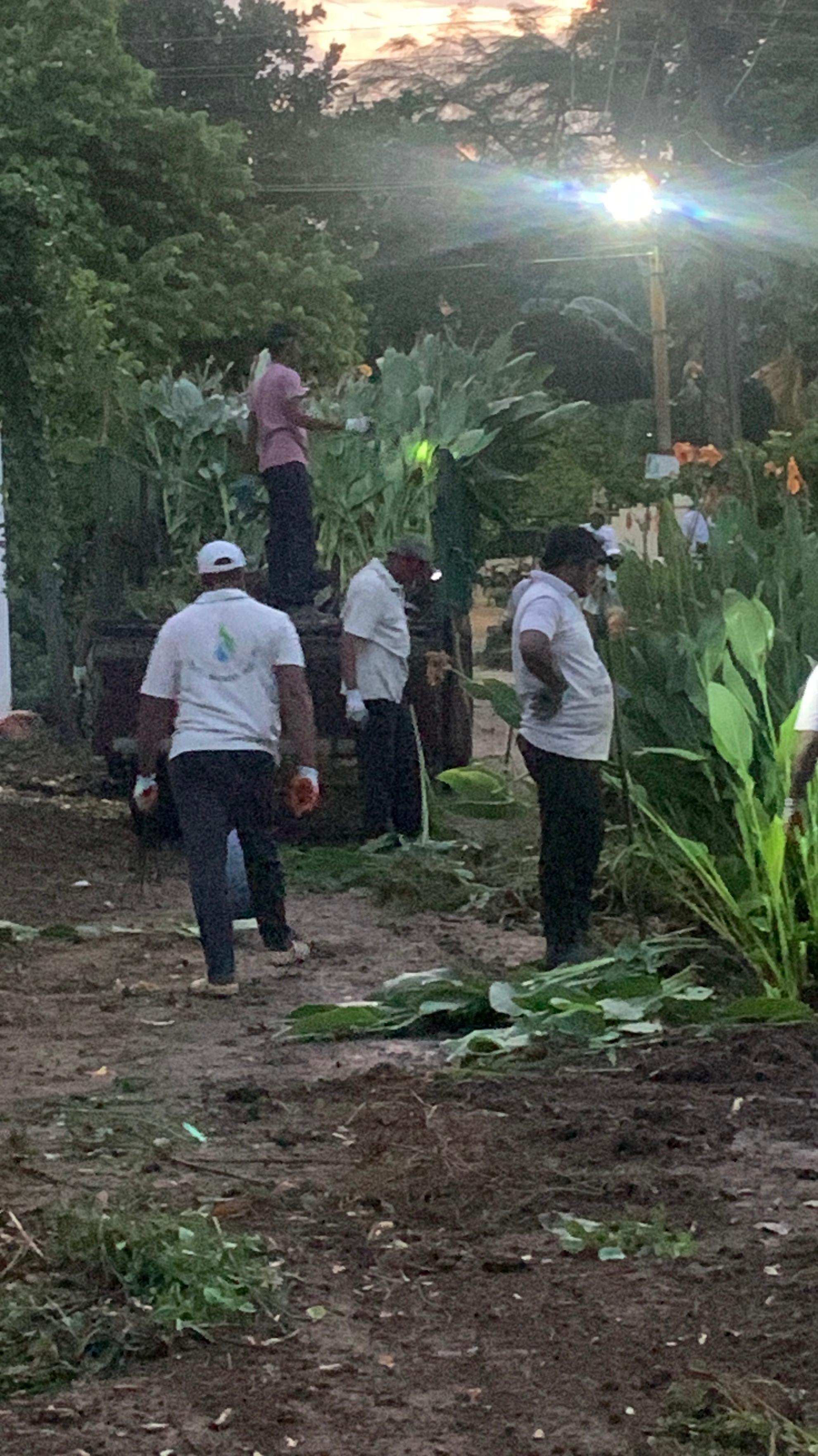 6 గురు కార్యకర్తలు ఆసుపత్రి ఎదురుగా ఉన్న సిమెంటు రోడ్డులో కుడి ఎడమ భాగాలు శుభ్రం చేసే పనిలో గడ్డి కలుపు విపరీతంగా పెరిగి ఆదారి మూసుకొస్తున్న తరుణంలో ఒక బృందం కార్యకర్తలు ఆ పని ఎంతో చక్కగా చేసి దారి వెడల్పయినట్లుందనిపించారు. మరొక దళం మురుగు నీటి డ్రైను ప్రక్కన ఏపుగా పెరిగి రోడ్డు మీదకి వంగిపోతున్న మెట్ట తామర మొక్కలను వేళ్ళతో సహా వేరొక చోట పెట్టుటకు వీలుగా మొత్తం తొలగించారు.
