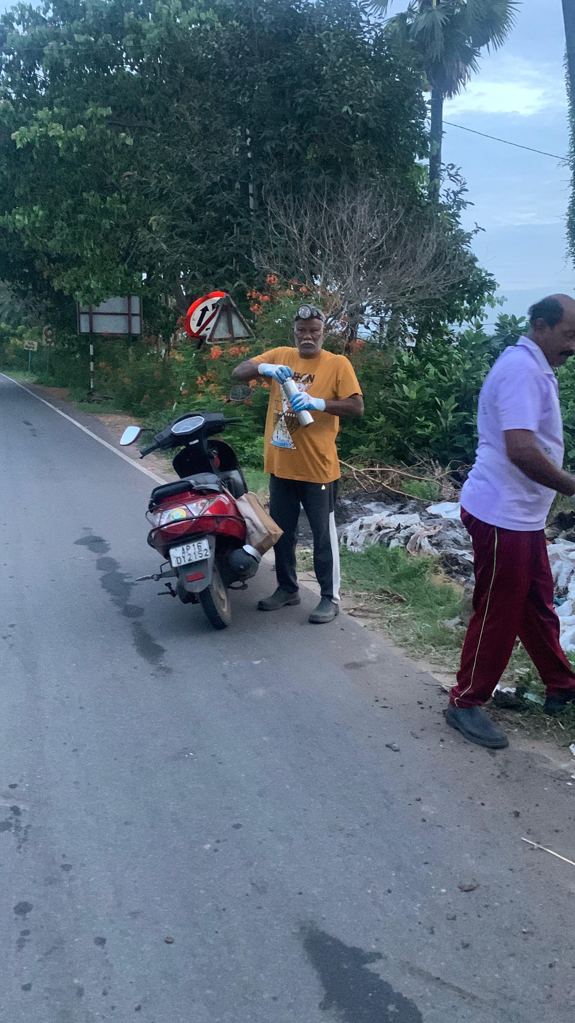 జాతీయ రహదారి ప్రక్కనే ఉన్న శారదా గ్రాండియర్ వద్ద ఈరోజు తెల్లవారుజామున 4:20 నిమిషాలకు 10 మంది కార్యకర్తలు చెత్తతో యుద్దానికి సన్నద్దమయ్యారు. చల్లపల్లి ప్రారంభం నుండి చల్లపల్లి చివర వరకు హైవే రోడ్ ను పచ్చని, చల్లని, ఆహ్లాదానిచ్చే అందాల రహదారిగా మార్చడానికి ఈరోజు ఒక్కొక్కరూ వచ్చి చేరిన 22 మంది కార్యకర్తలు చేస్తున్న పని ఈ పూల మొక్కలను , పండ్ల మొక్కలను, నీడనిచ్చు మొక్కలను సంరక్షించడమే!