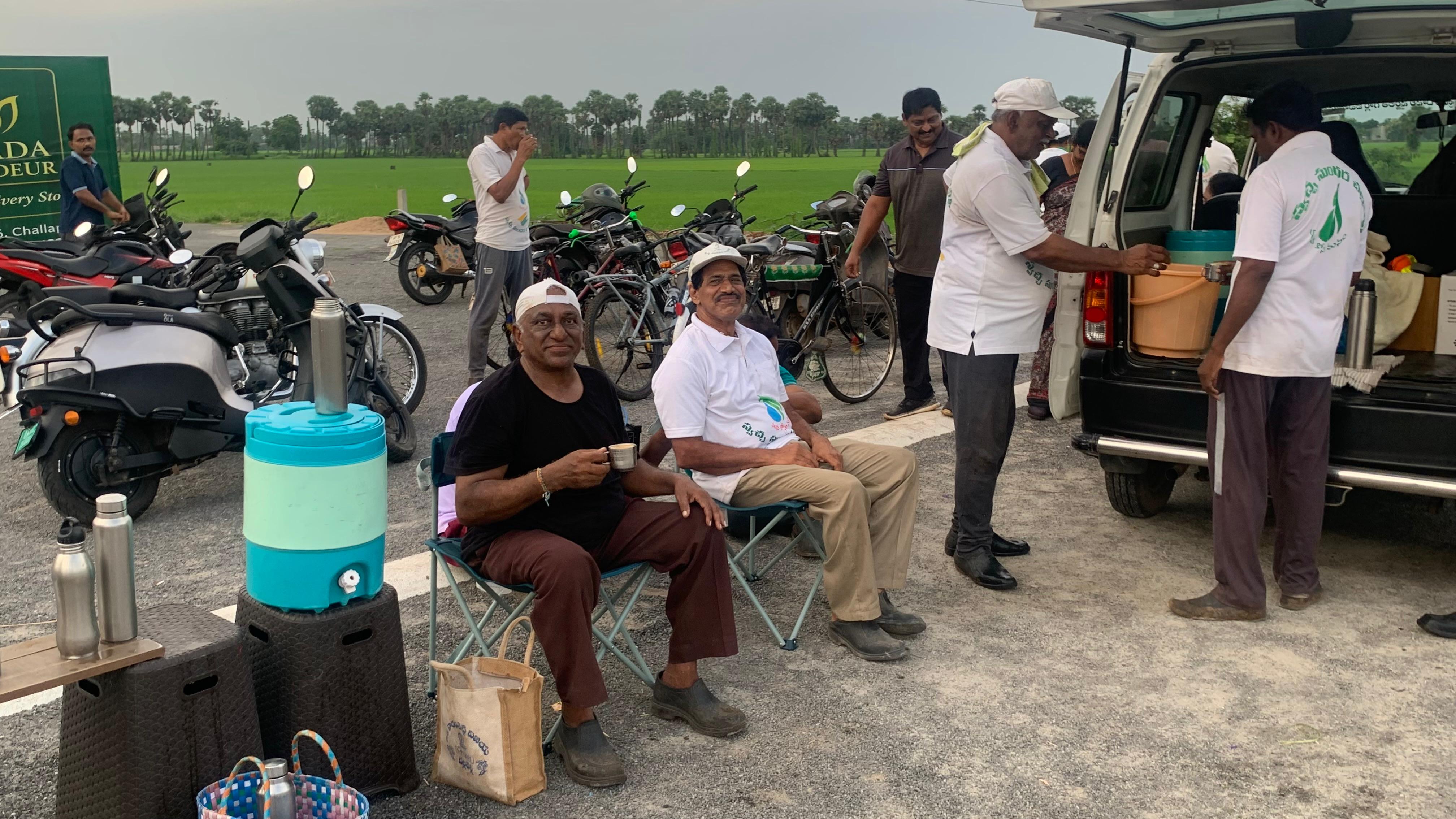 6 గంటలు దాటినా కొంత సమయం తరువాత విజిల్ మ్రోగగానే 22 మంది కార్యకర్తలు పనికి విరామమిచ్చి కాఫీ సేవించిన పిదప ‘మాలెంపాటి అంజయ్య’ గారు పలికిన “జై స్వచ్చ సుందర చల్లపల్లి” నినాదానికి జై కొట్టి,