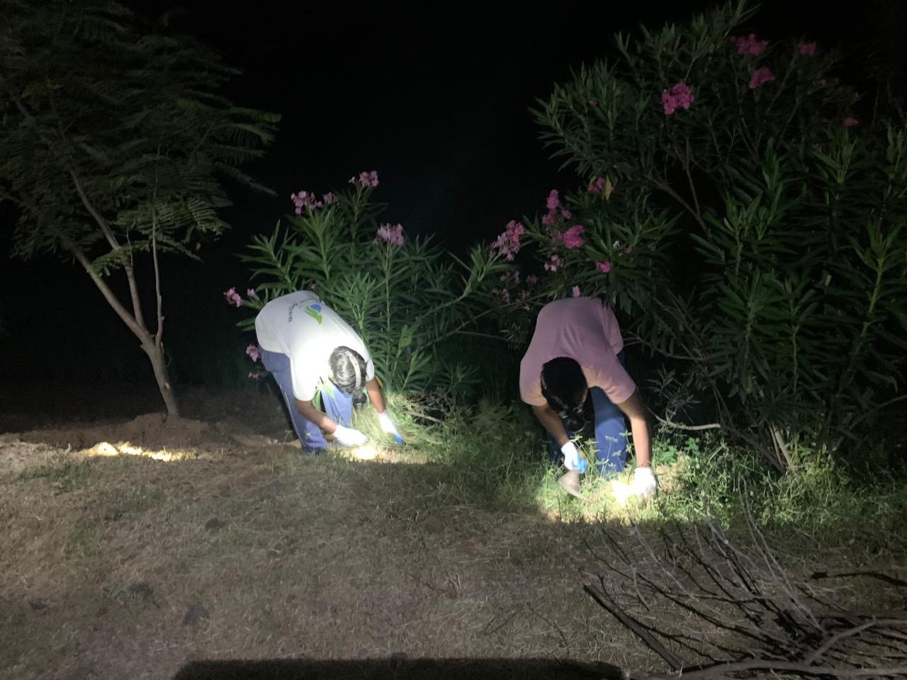 తదుపరి కొద్ది సమయానికి ఒక్కొక్కరుగా వచ్చి మొత్తం 24 మంది కార్యకర్తలు మొక్కల సంరక్షణా చర్యలలో భాగస్వాములయ్యారు. వారిలో కొద్ది మంది కార్యకర్తల బృందం కూడా పెద్ద మొక్కల మొదళ్ళకు మట్టి వేసి పరిరక్షణా చర్యలు చేపట్టారు.