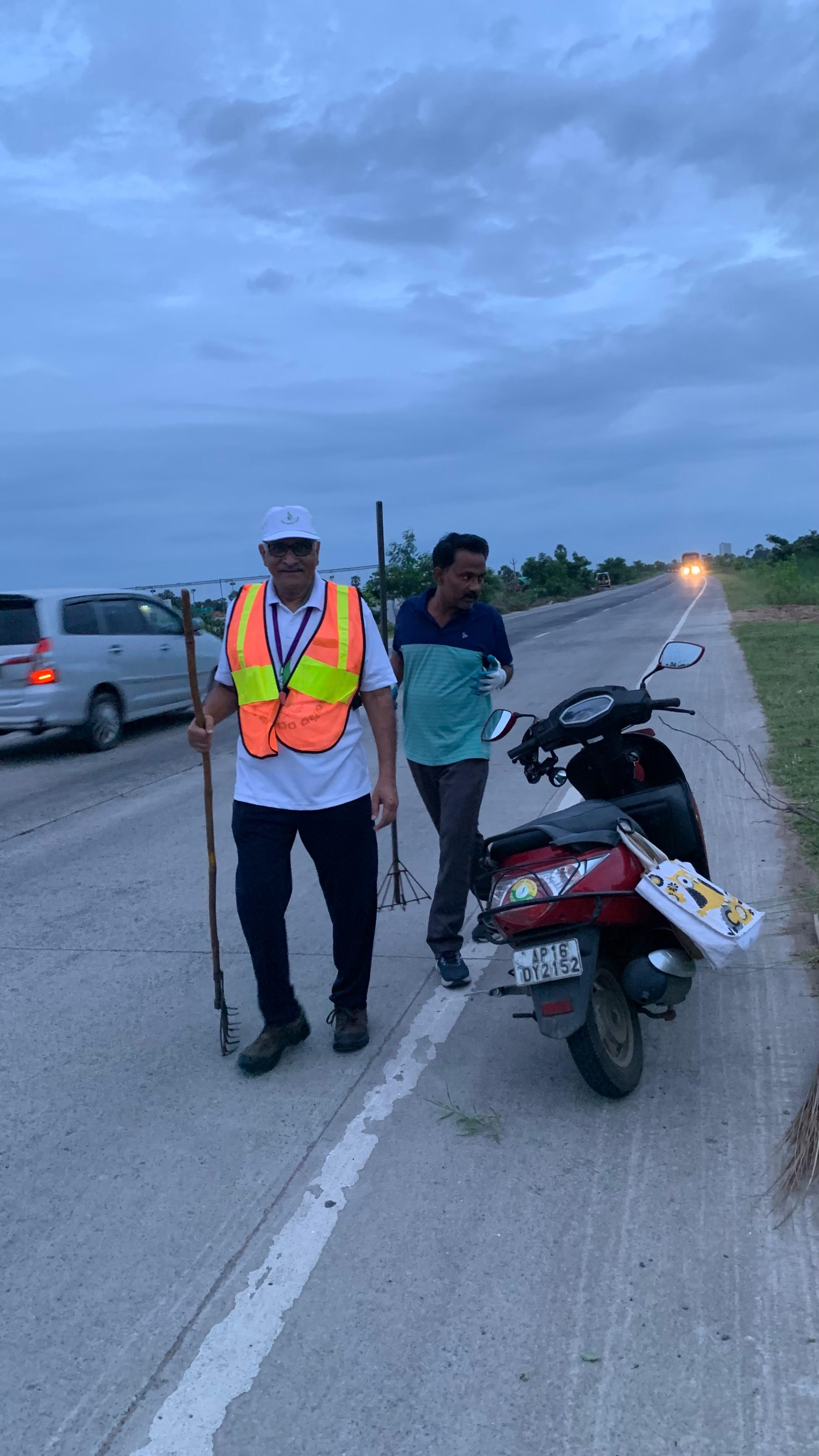 ఈరోజు తెల్లవారుజాము 4:13 నిమిషాలకు 8 మంది కార్యకర్తలు హైవేలోని “శారదా గ్రాండియర్” వద్ద కలుసుకుని మొదటి ఫోటో దిగి రోజు వారి పని ప్రారంభించారు.
