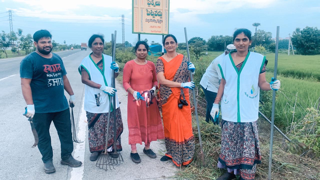 హైవేకు ఎడమ వైపు (బందరు వైపు) మిగిలిపోయిన దిగువ భాగం లోని కలుపు, పిచ్చి మొక్కలు, కాడ ఉన్నా సరే కష్టపడి మొత్తం తొలగించి మొక్కలకు గాలి, వెలుతురు, సూర్యరశ్మి అందే రక్షణా చర్యలు చాలా పకడ్బందీగా నిర్వహిస్తున్నారు.