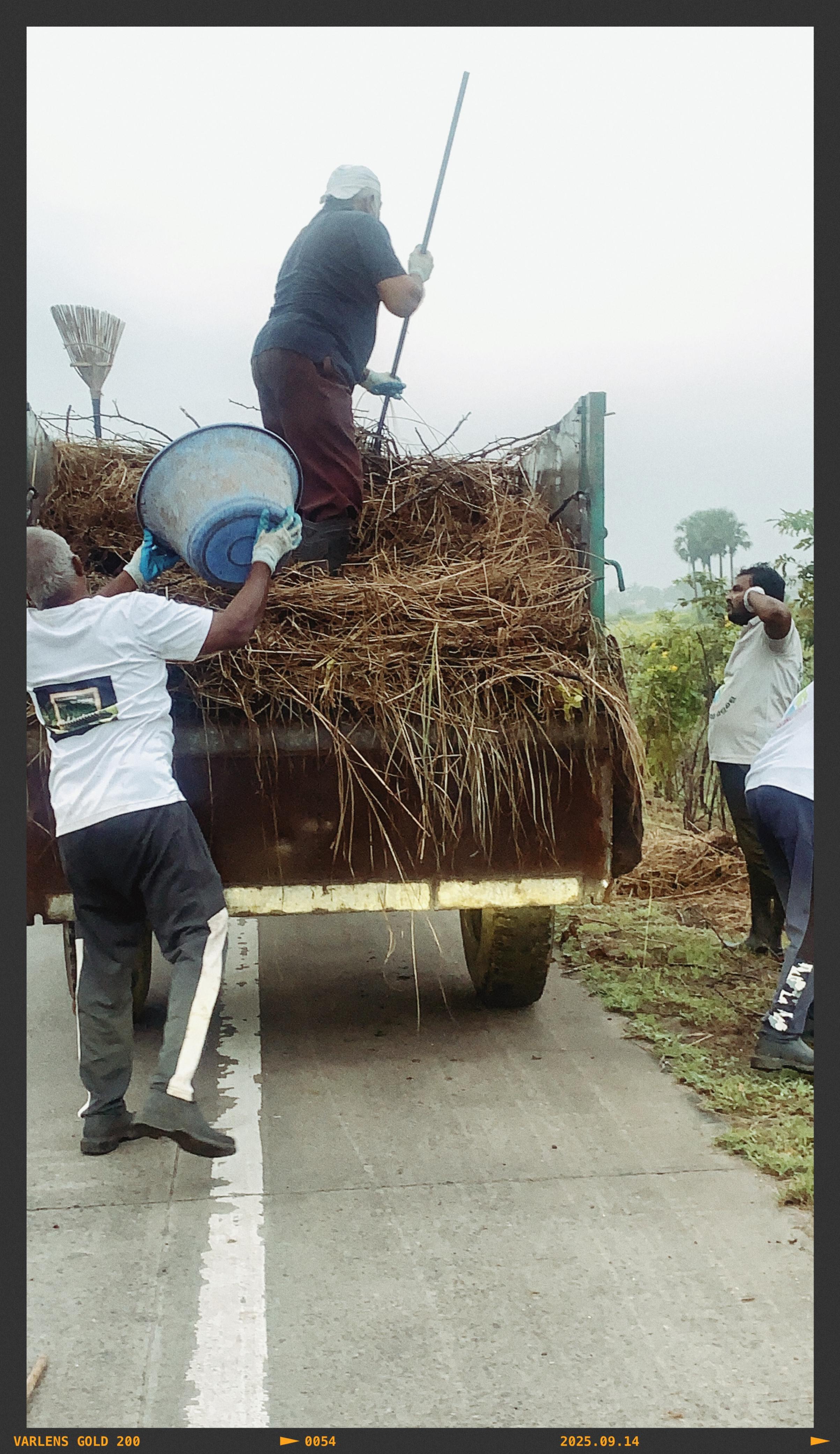 మరొక బృందం కొద్ది రోజులుగా అక్కడక్కడా లోడింగ్ చెయ్యకుండా వదలవలసి వచ్చిన కొంత తుక్కును, ముళ్ళ కంపను ట్రాక్టర్ లో లోడ్ చేసుకుంటూ మొక్కలకు కంప పాతుకుంటూ, అస్తవ్యస్తంగా పెరిగిన కొమ్మలను కత్తిరించుకుంటూ ఏకకాలంలో పెక్కు స్వచ్ఛతా పనులను చక్కబెడుతున్నారు.