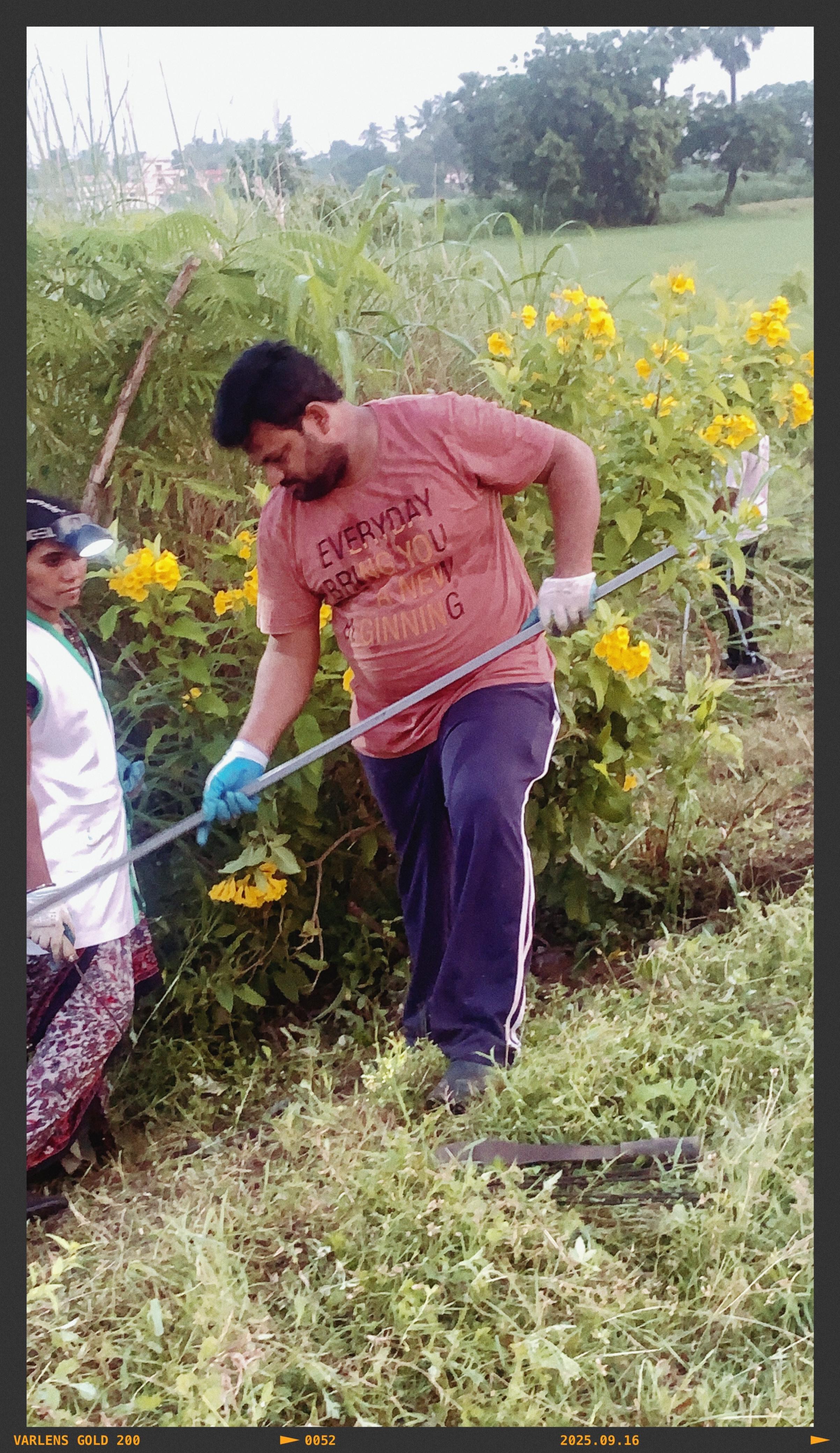 జాతీయ రహదారిపై తెల్లవారుజాము 4:24 నిమిషాలకు మొదలైన నేటి కార్యక్రమం ‘శారదా గ్రాండియర్’ కు ఎదురుగా ఉన్న సువర్ణ గన్నేరు మొక్కలలో ఉన్న కలుపును, చెత్త గడ్డిని తీసివేసి విరిగిపోయిన ముళ్ళ కంపలను మొక్కలకు అడ్డుగా లేకుండా తీయడం జరిగింది.