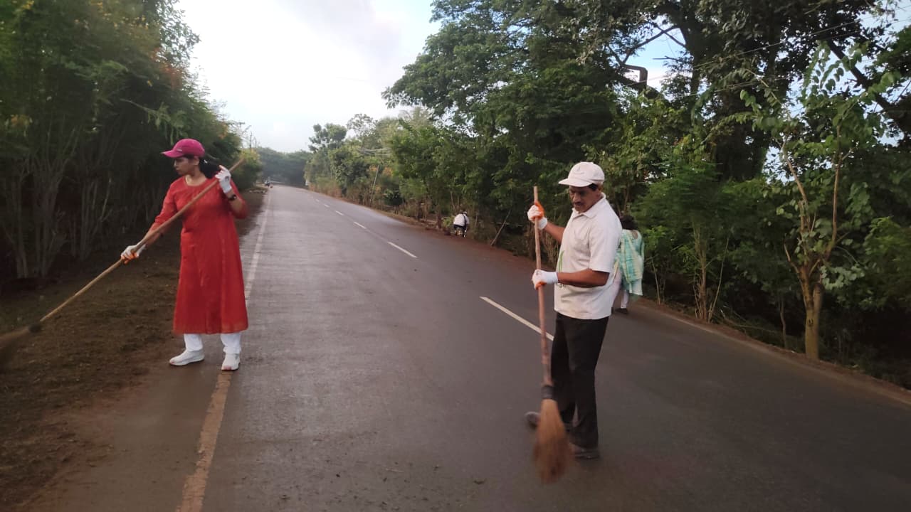 అనంతరం వెనుక మరో ముగ్గురు మహిళా కార్యకర్తలు ఊడ్చి రహదారినంతా శుభ్ర పరిచారు. మరొక కార్యకర్త మిషన్ రంపంతో గడ్డి ని కట్ చేయగా రోడ్ మార్జిన్ ఎంతో సుందరంగా ఉన్నది. మరికొంతమంది కార్యకర్తలు రోడ్డు కుడి ఎడమల దిగువ భాగంలో ఉన్న కలుపు, గడ్డిని, వంకరగా పెరిగిన అడవి తంగేడు కొమ్మలను కత్తిరిస్తూ బాగు చేశారు.
