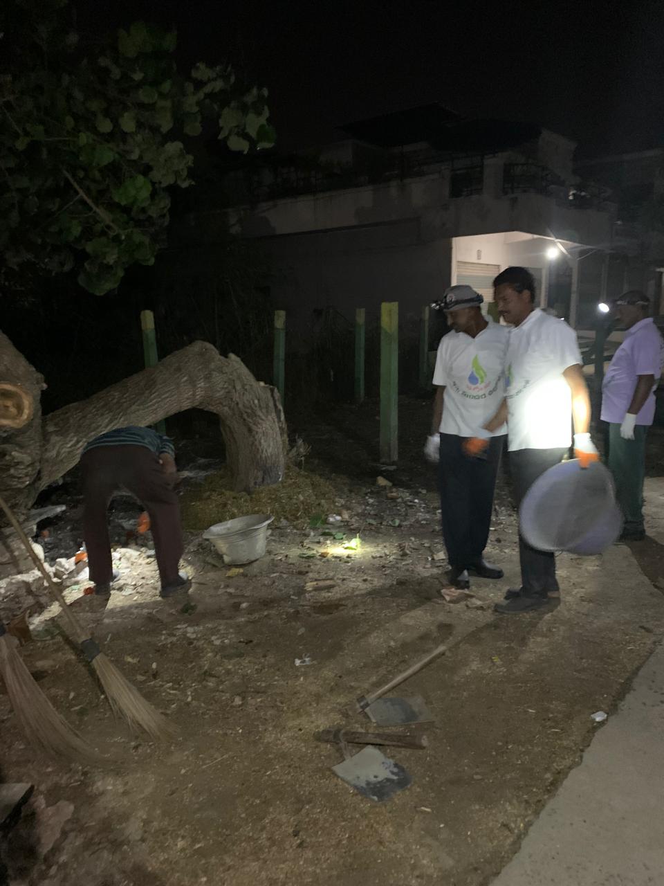 ATM సెంటరు వద్ద వేకువ జాము 4.15 ని. లకు కార్యకర్తలు అంతా చేరి పనికి సిద్ధమయ్యేసరికి ఆ ప్రాంగణమంతా మట్టితో నిండి ఉంది. చల్లపల్లిలో ఏదైనా ఓపెన్ మీటింగ్ జరుపుకోవాలంటే, ఎక్కడా ట్రాఫిక్ ఇబ్బంది లేకుండా పబ్లిక్ కూర్చోటానికి వీలుగా ఆ సెంటర్ లో ప్రాంగణమంతా పేవర్ టైల్స్ తో సౌకర్యంగా ఉండేది. స్వచ్చ కార్యకర్తలు అంత వీలుగా ఆ ప్రదేశాన్ని ఒకప్పుడు తీర్చిదిద్దారు.