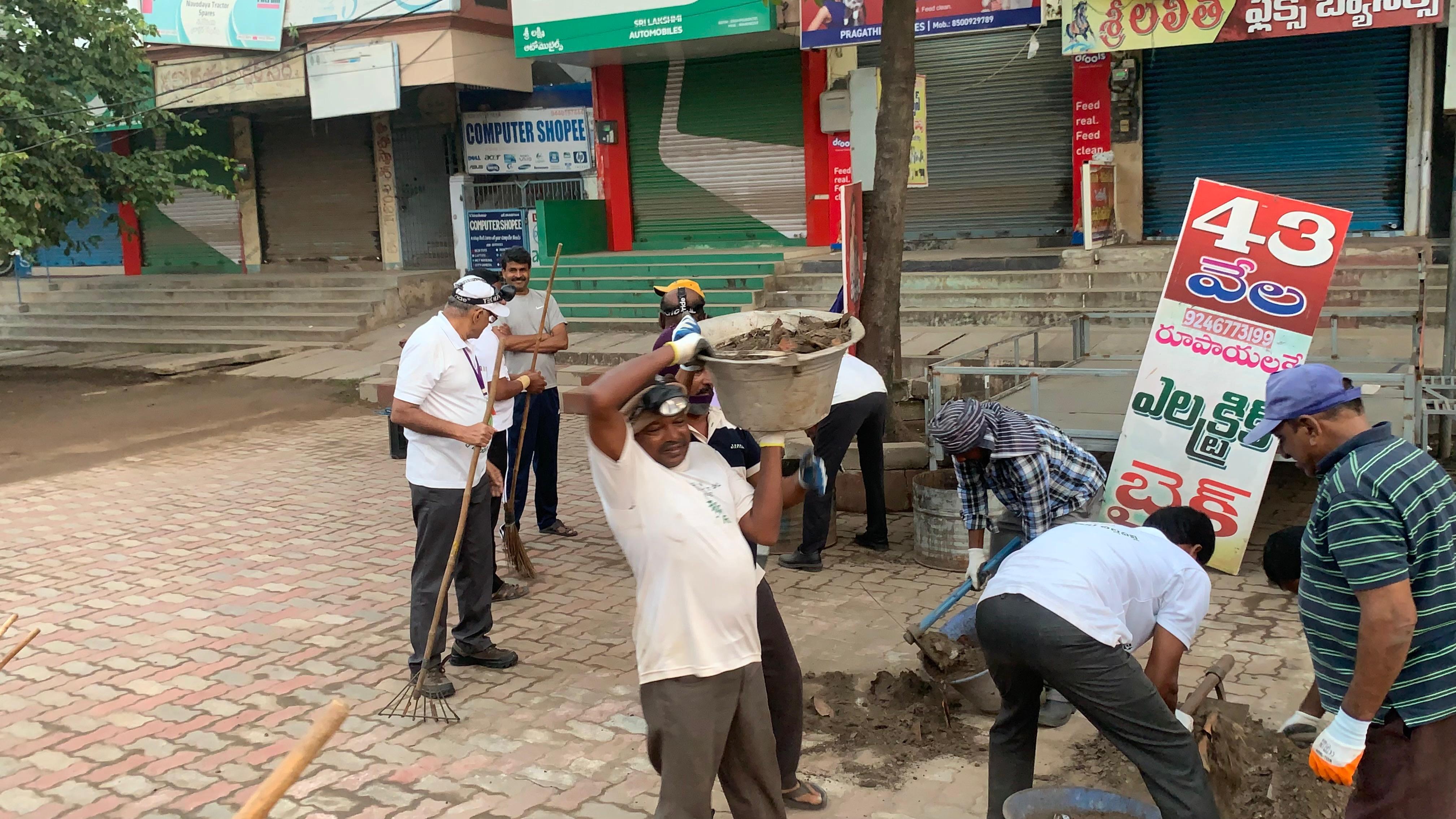 కానీ ఈ రోజు అనేకమంది వ్యాపారులు స్వప్రయోజనం వలన అధికారుల అలసత్వం తోడై ఈ రోజు ఆ ప్రదేశం ఆక్రమణలతో కుచించుకుపోయి కళావిహీనంగా మారింది. మురుగు డ్రైను పైకి పొంగి పొర్లి అక్కడ మట్టితో నిండిపోయింది. కానీ కార్యకర్తలు మాత్రం చీపుళ్లు, పారలు చేతపట్టి ఆ ప్రాంతాన్ని డిప్పల కొద్దీ మట్టి తీసి అందంగా చేయగలిగారు.