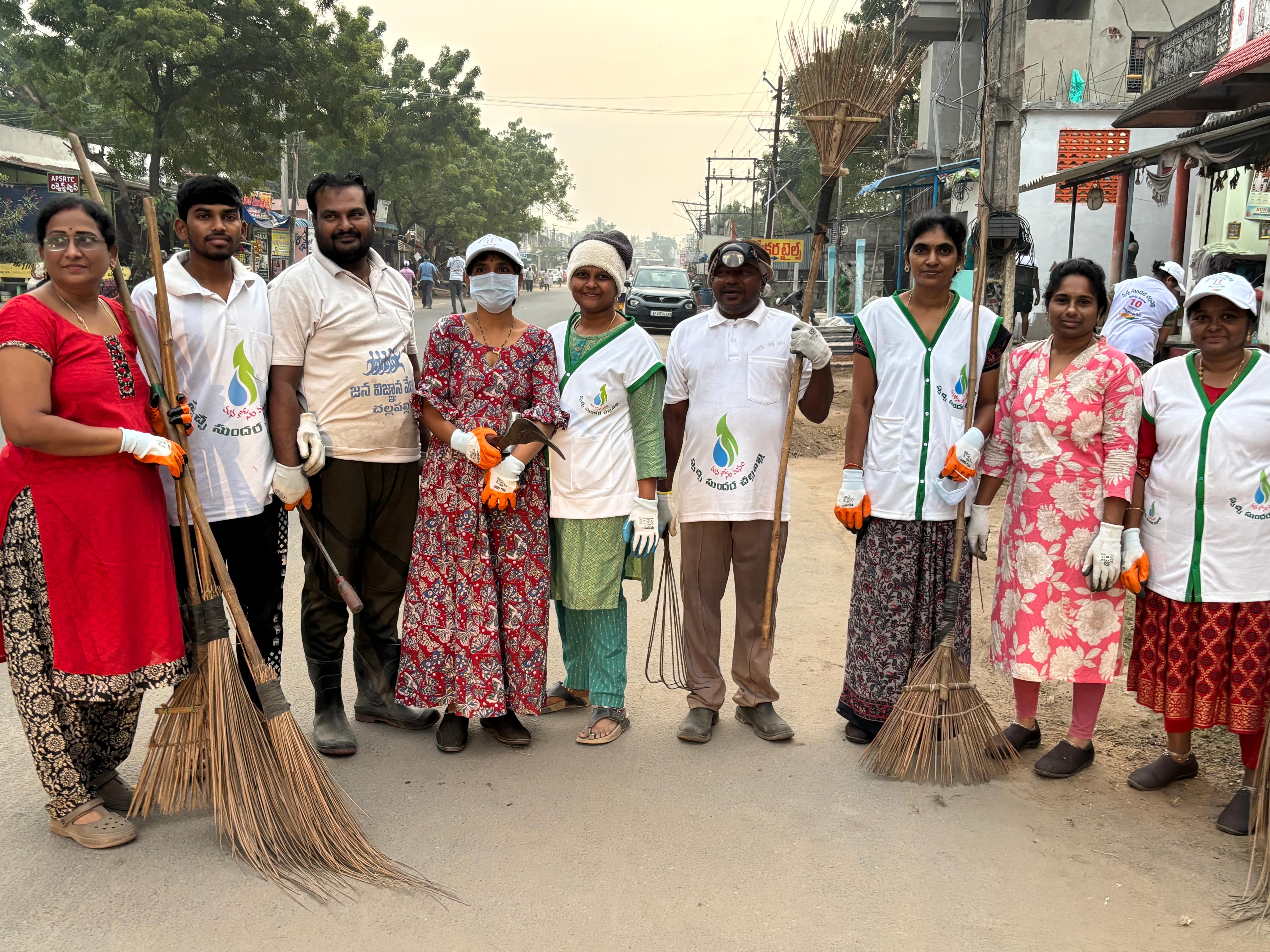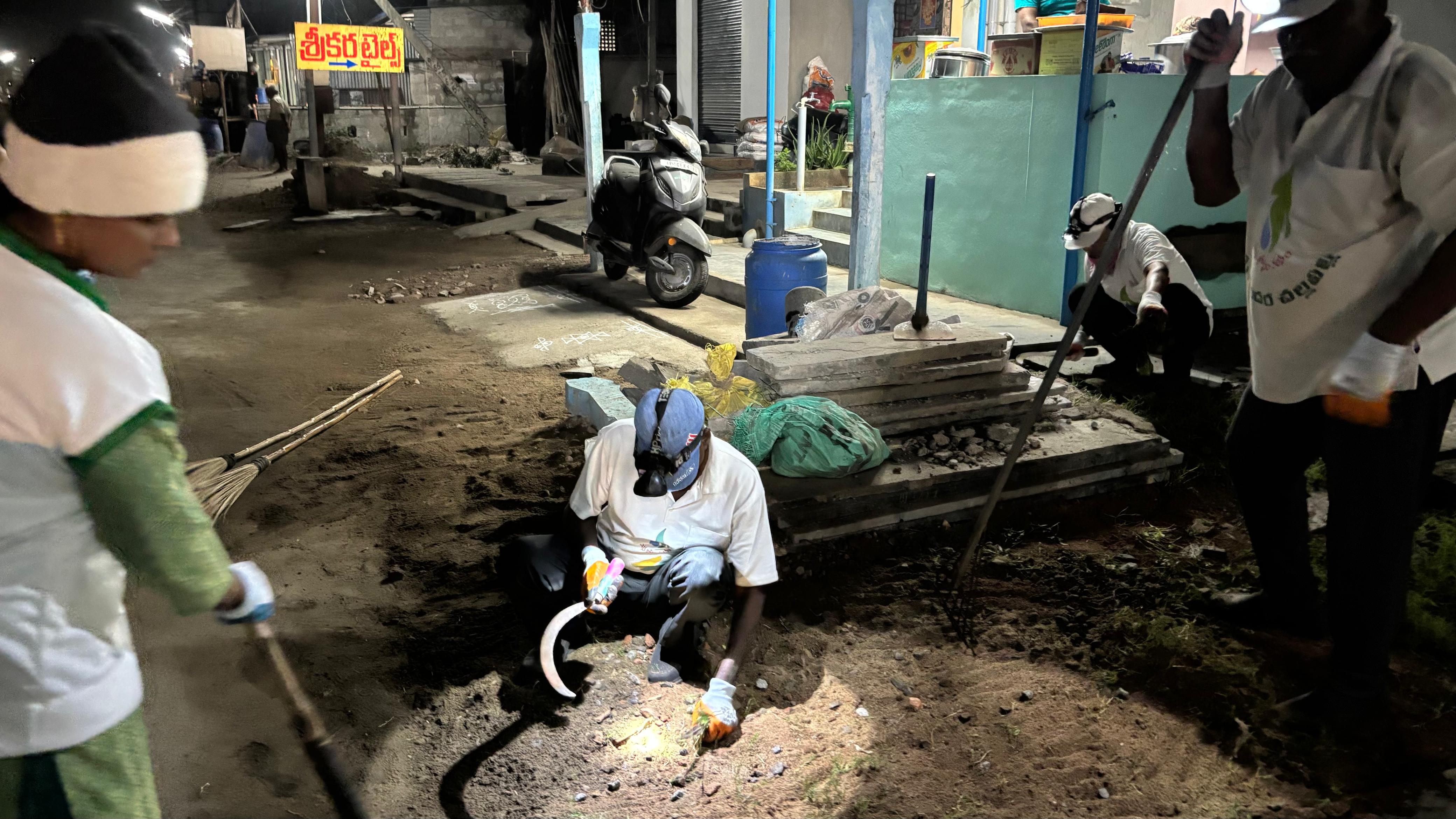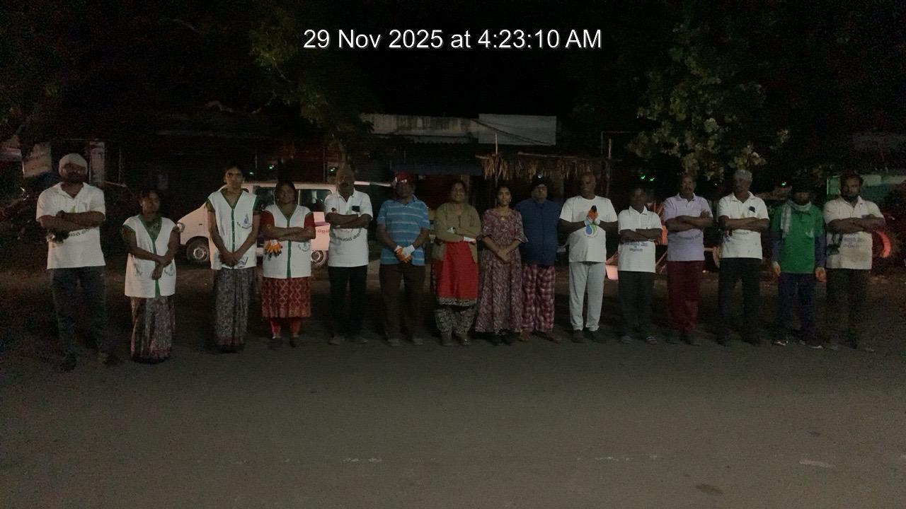 - ఈ వేకువ 12 మంది మహిళలతో సహా 45 మంది కార్యకర్తలు ఏ 3.30 కో మేల్కొని, చలిని ధిక్కరించి, తమ నివాసాలకు 3 కి.మీ. దూరంలోని పడమటి వీధికొచ్చి, 2 గంటలు నానా మురికి పనులు చేశారా లేదా?