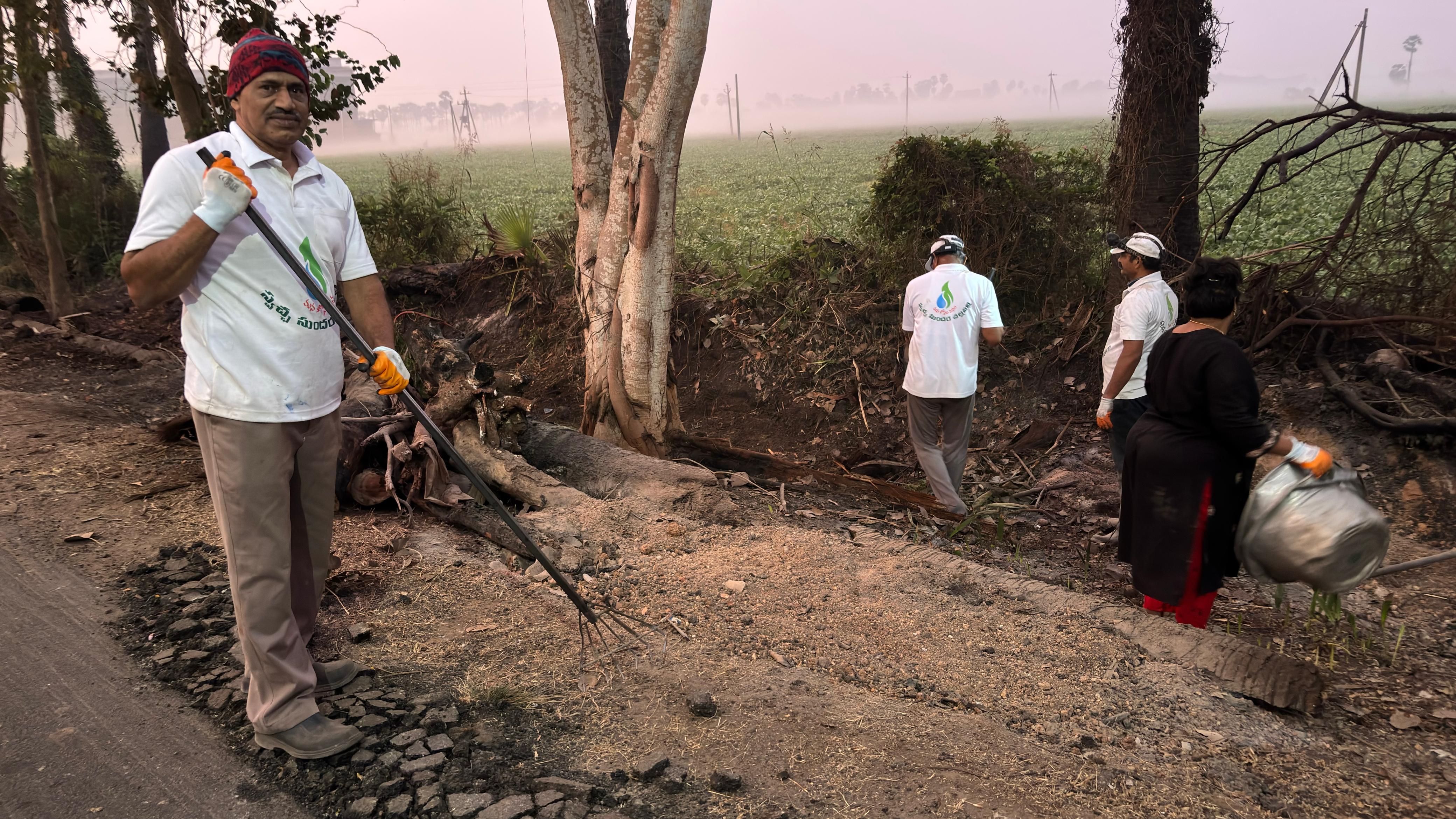 - గడ్డి చెక్కారు, పిచ్చి-ముళ్ల చెట్ల పని పట్టారు, బాటను ఊడ్చారు, చకచకా వ్యర్ధాల్ని ట్రాక్టర్ లో నింపుకొని, శివరాంపురం డంపింగుకు తరలించారు....