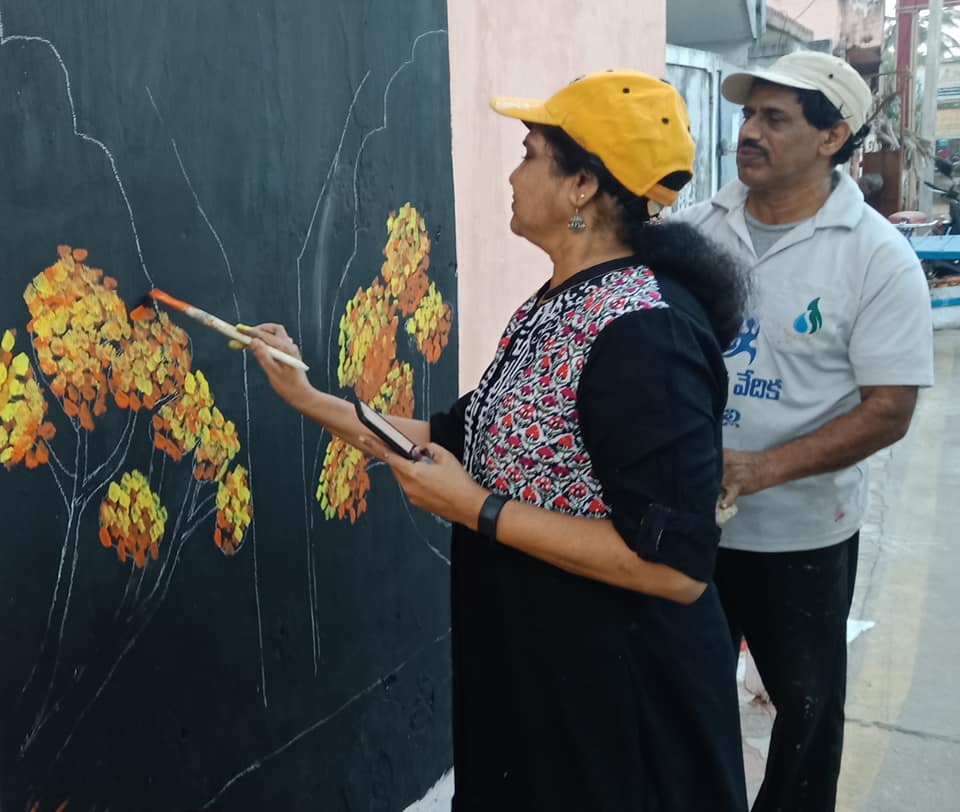 మాత డా.పద్మావతి మదిన మెదిలిన సుందరీకరణ, సత్వభావాన రహదారివనాల సుందర రూపమిచ్చె, చిత్రోత్సవ మధనంబు తలపెట్టె విదుషీమణి, ప్రతిభాపాటవాల మాధురీ, దుర్గావాసులతో .సుందరబృంద చిత్రకళా వైభవం. మాధురీపద్మావతుల, దుర్గావాసుల కళాపాటవం, అక్షర మాలికలు, పుష్పాలు ఫలములు, పాండాలు,పెంగ్విన్లు, కార్టూను చిత్రాలు, నాట్యాభంగిమలు, జలపాతాలు, పూర్ణకలశాలు, చిత్రకళా ప్రక్రియలేన్నెన్నో సమాహారం చేసి కూర్చిన సామ్యవాద బజారున 25 దినములు మహాయజ్ఞం చేసి, అంగరంగ వైభవంగా తీర్చ...